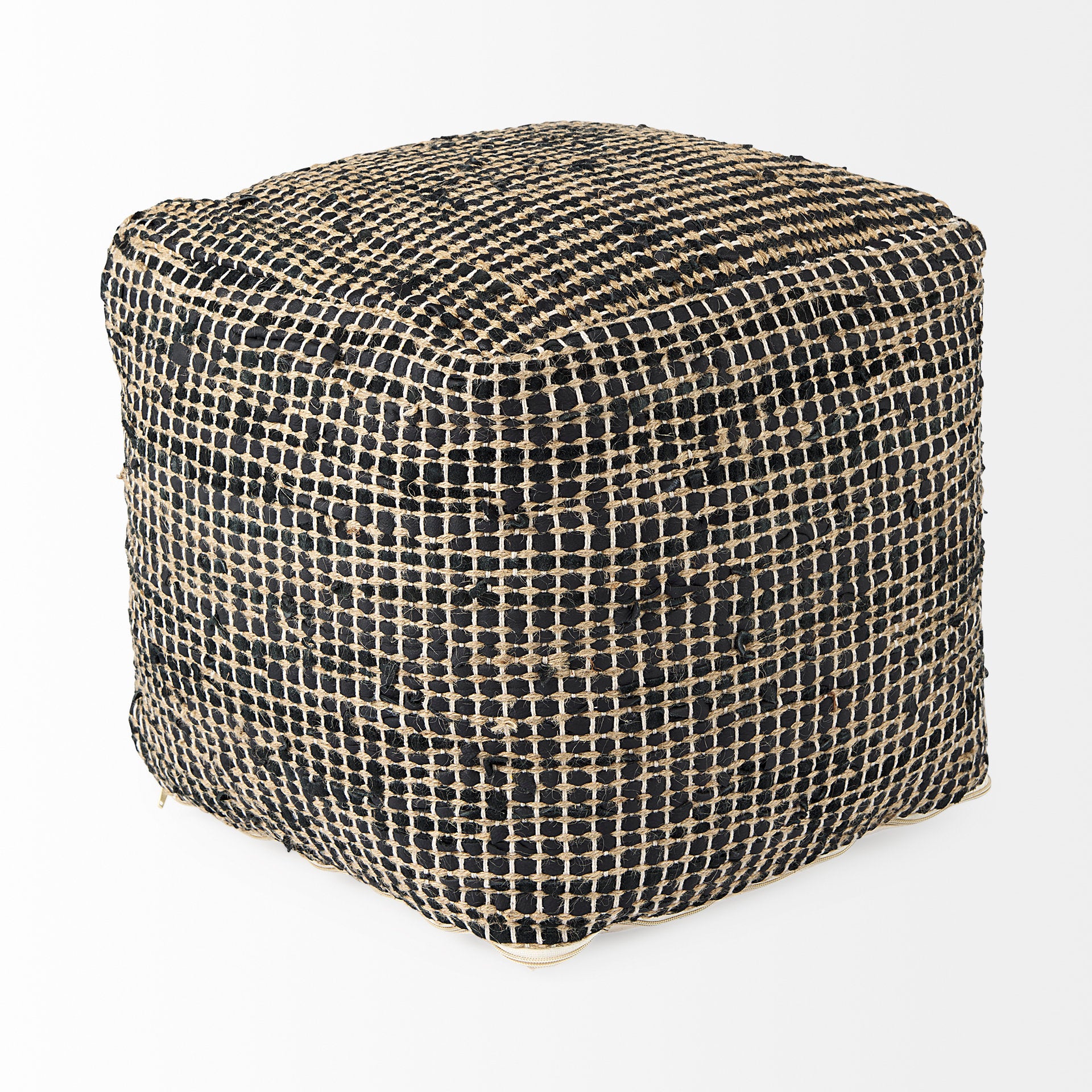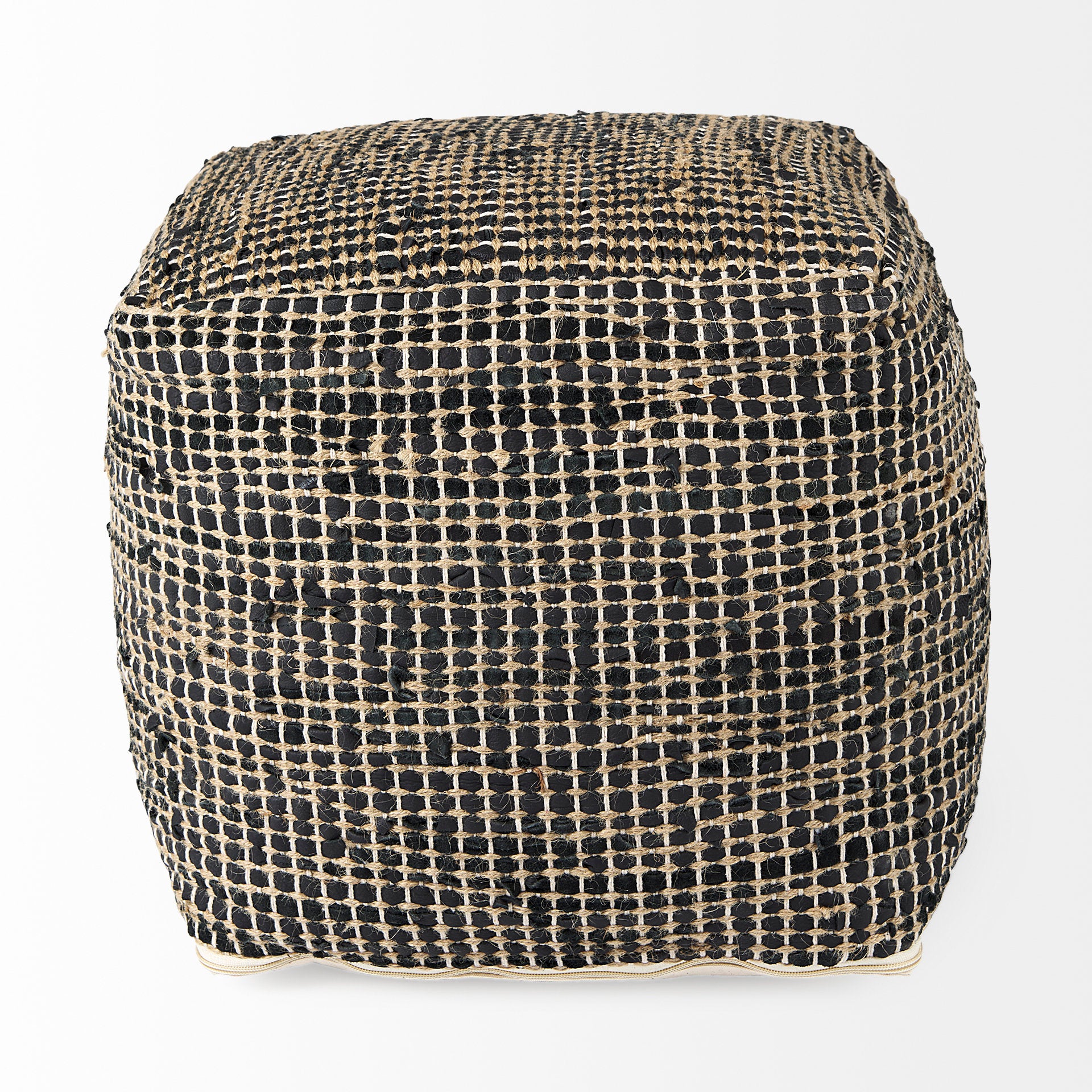 Aalia is a charcoal black and beige pouf, and is carefully constructed from leather and jute.
