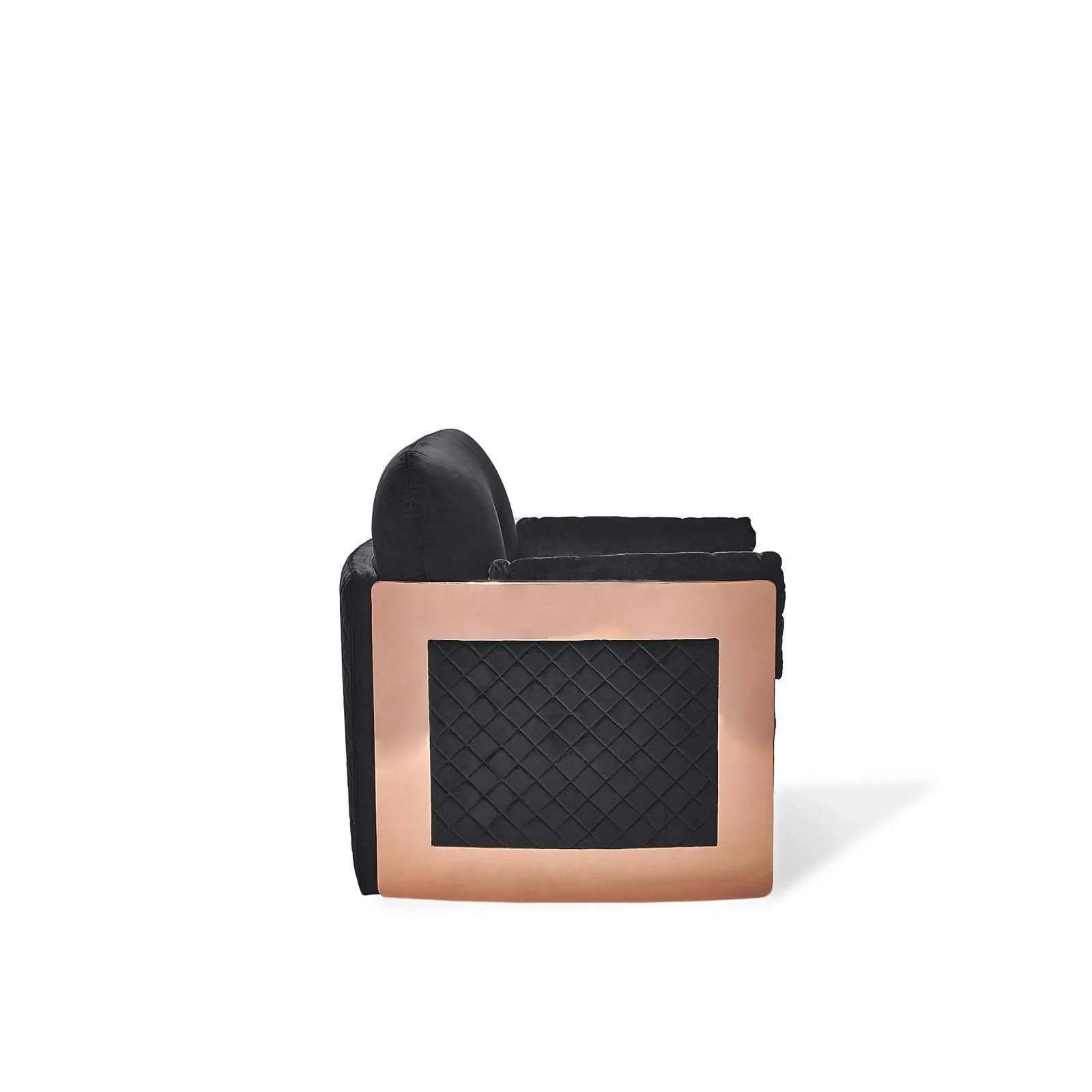 Adagio Luxury Sofa is an original Norhaus Furniture design by Norhaus Furniture. The Stainless Steel detail on the arm shows the sophistication and workmanship of this exquisite piece of furniture. It features removable back cushions for versatility and added variety, the stainless steel metal bar on the back cushion adds to its unique detail. Throw pillows are included with each piece The Adagio sofa set is available in multiple velvet fabrics and silver or rose gold options on the accent metal details.