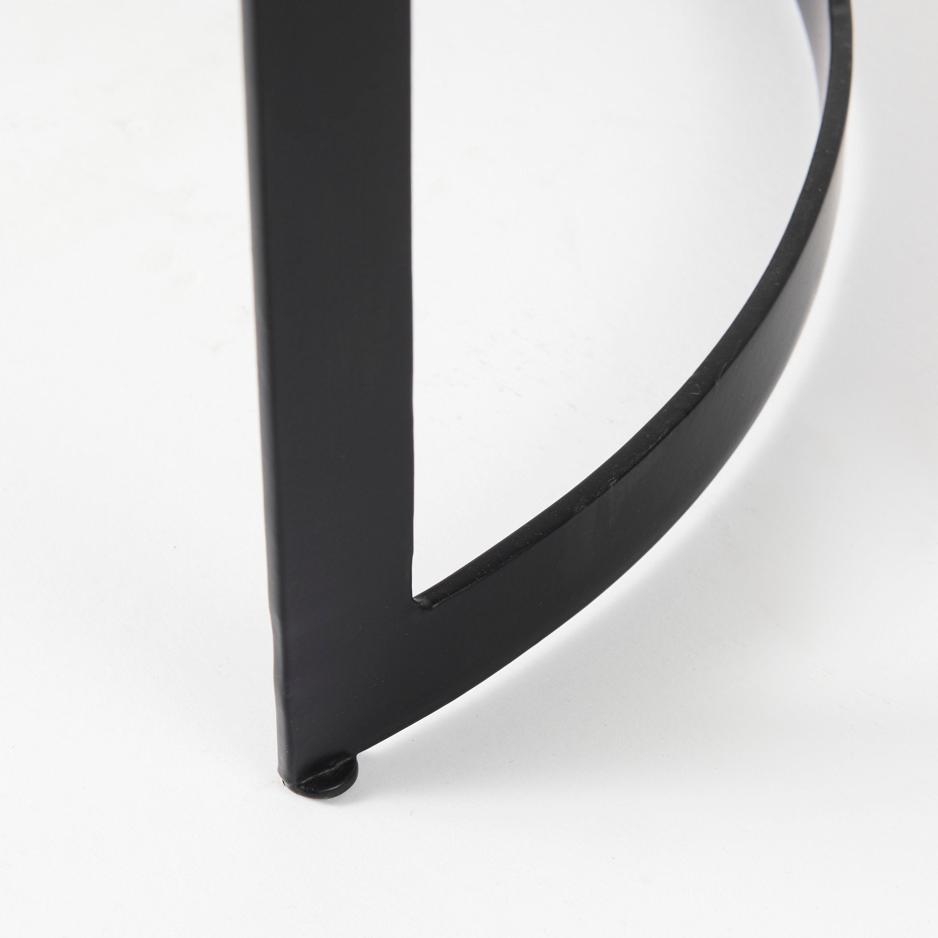 These nesting tables are a beautiful combination of round, lipped tops crafted from solid Mango wood and crescent-shaped frames crafted from high-quality flat iron.Β