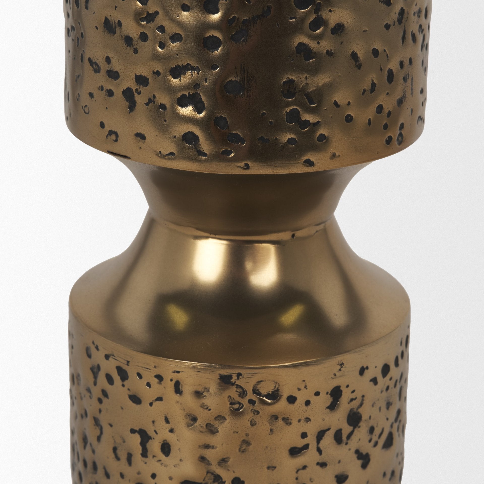 Akira Small Hammered Gold Metal Pillar Candle Holder