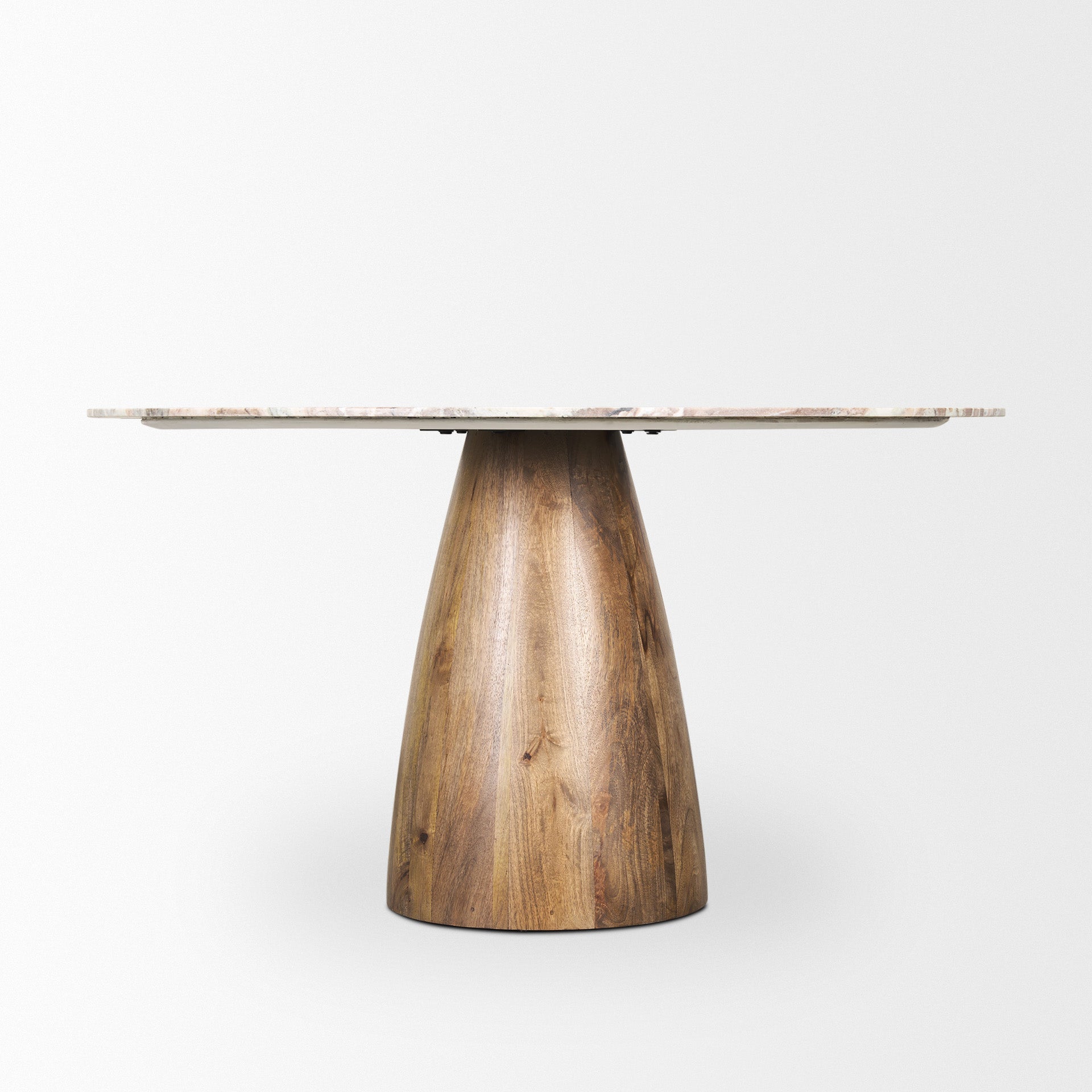 Allyson 54" Round Brown Pedestal w/ Pink Marble Top Dining Table