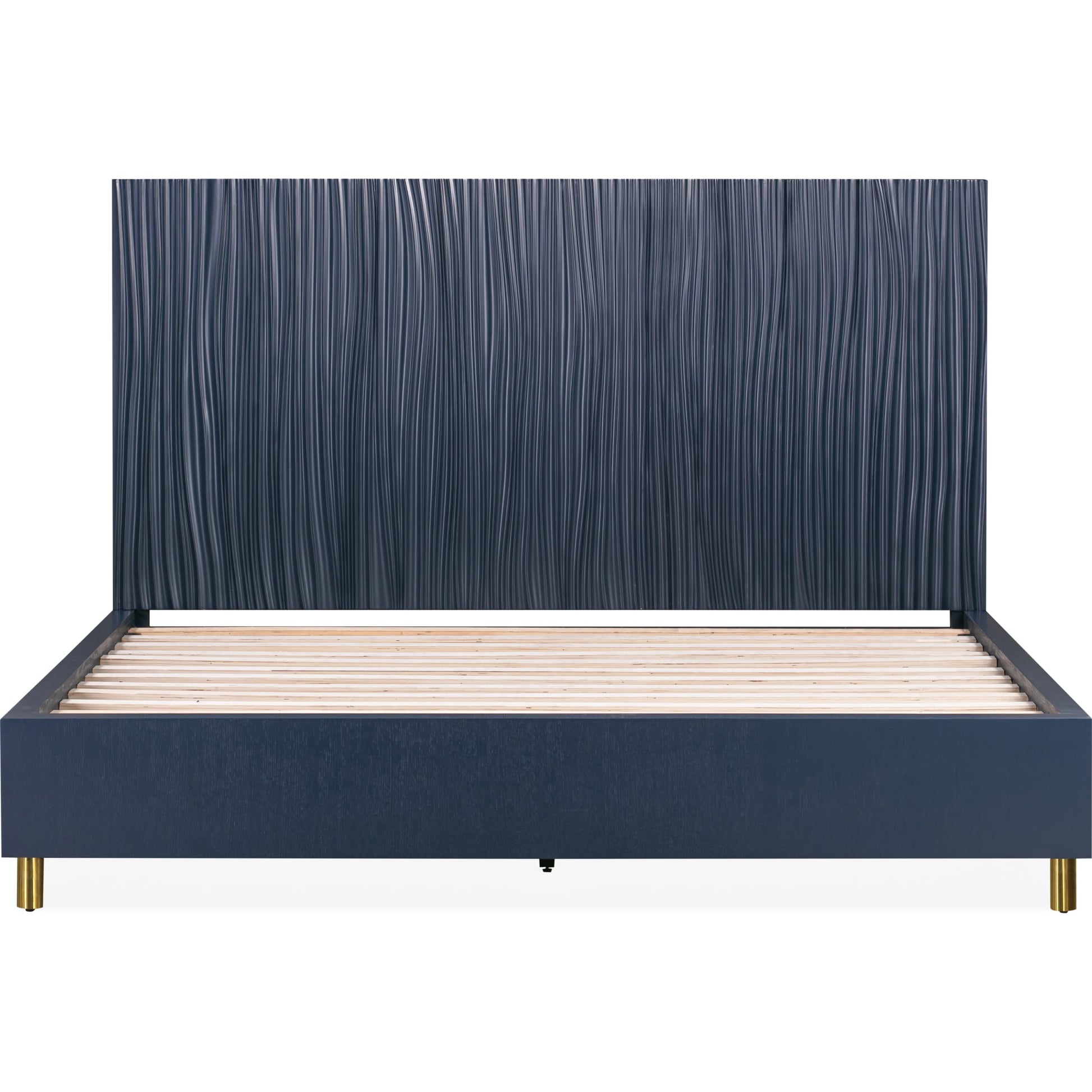 Argento Wave-Patterned Bed in Navy Blue and Burnished Brass