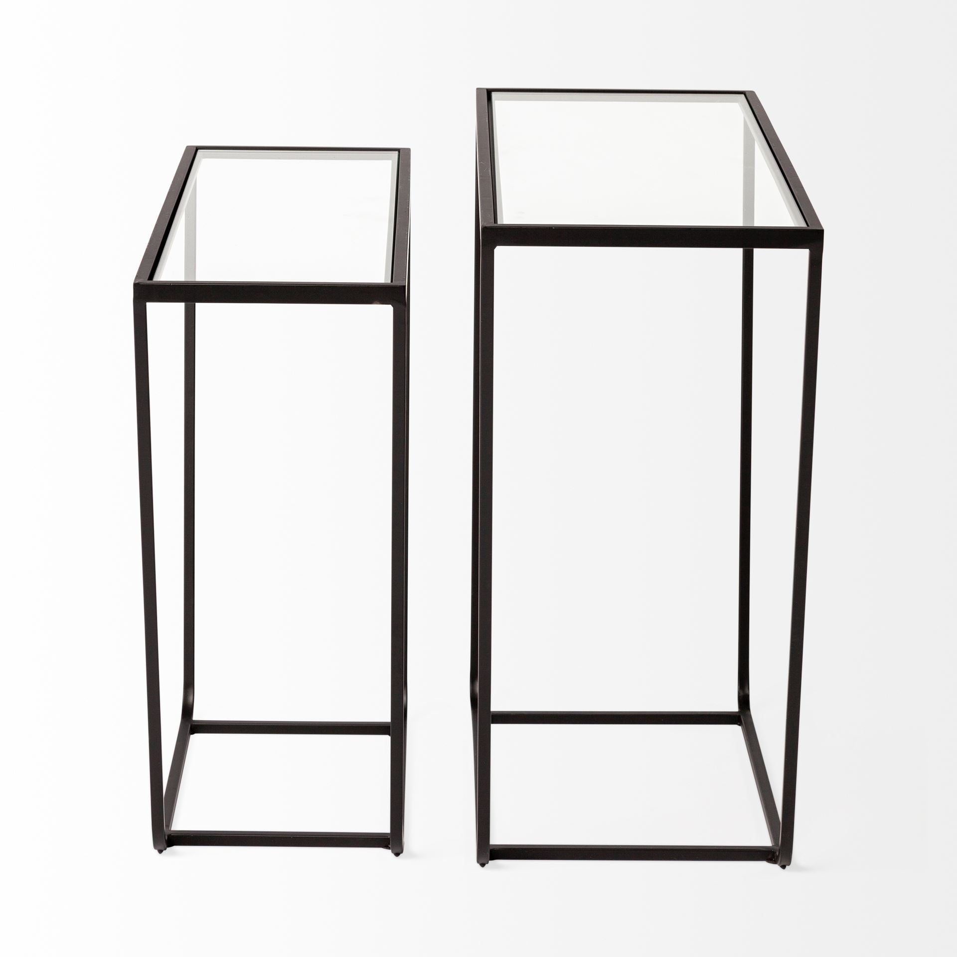 Arya (Set of 2) 24L x 10W Black Rectangular Glass Top Iron Frame Accent Table