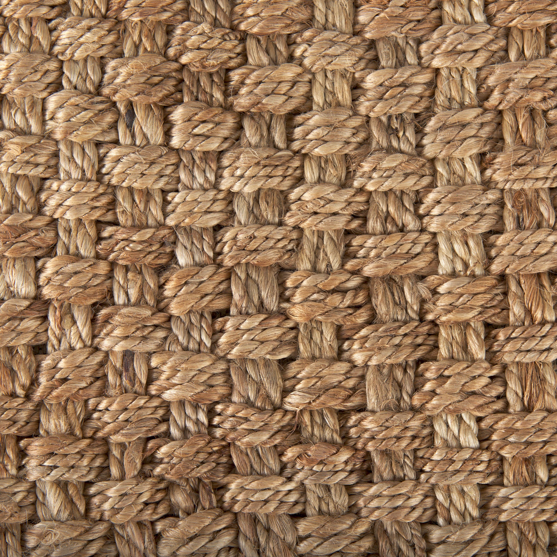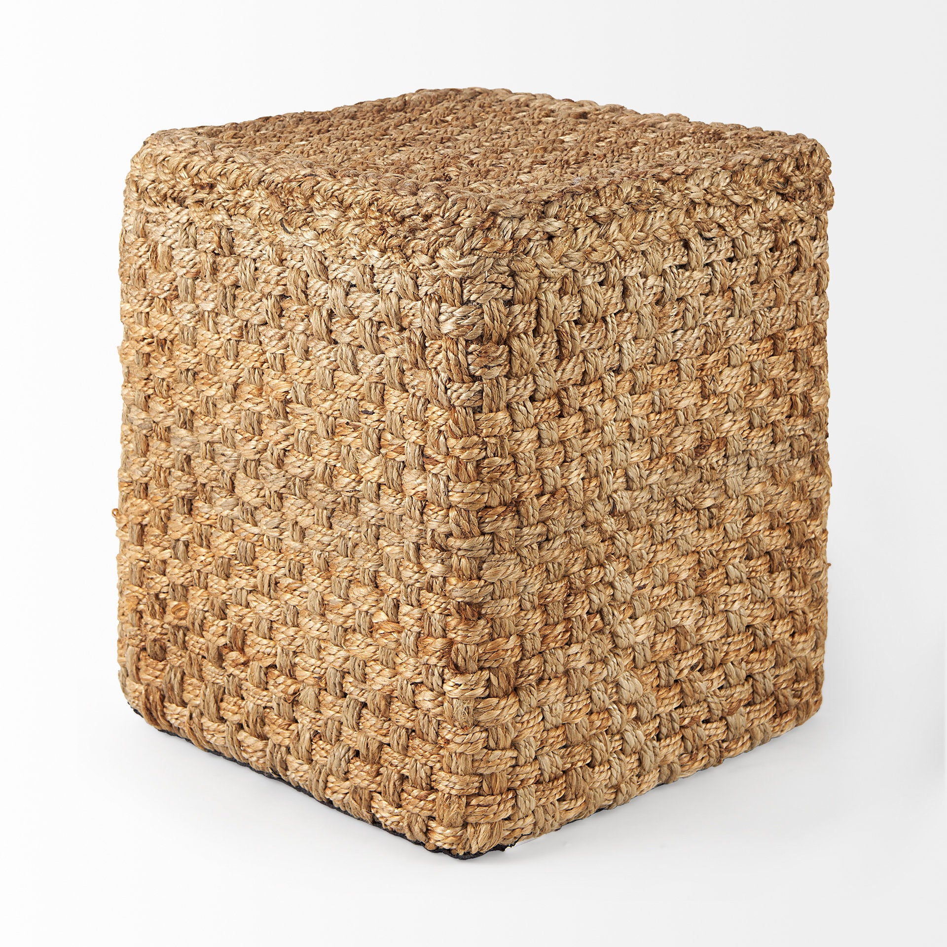 The Aylin Pouf is a square-shaped seat handwoven in a medium brown Jute.