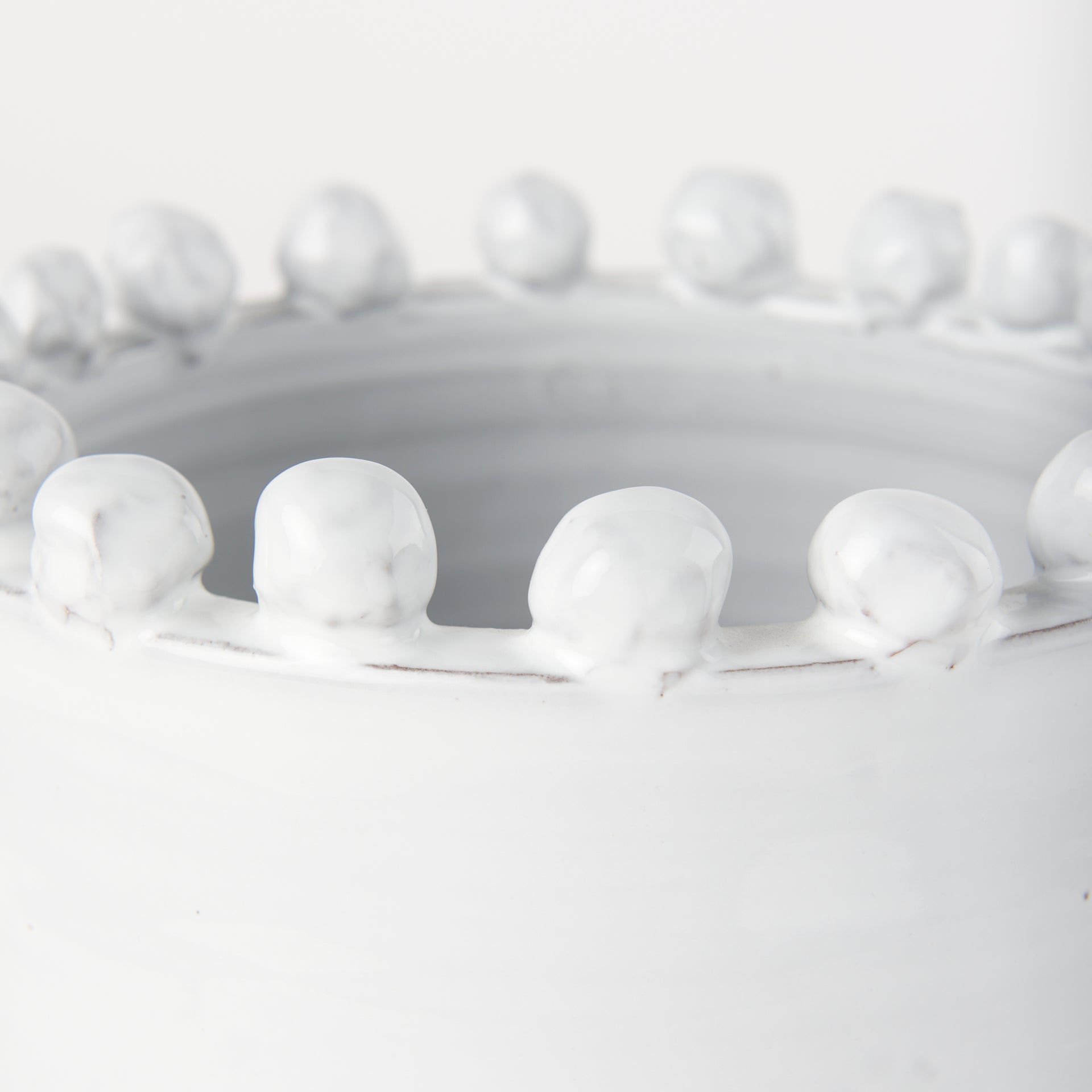 The Basin, skillfully crafted from ceramic with handmade ball accents that circle the rim, is a simplistic yet unique addition to your space that is sure to stand the test of time.