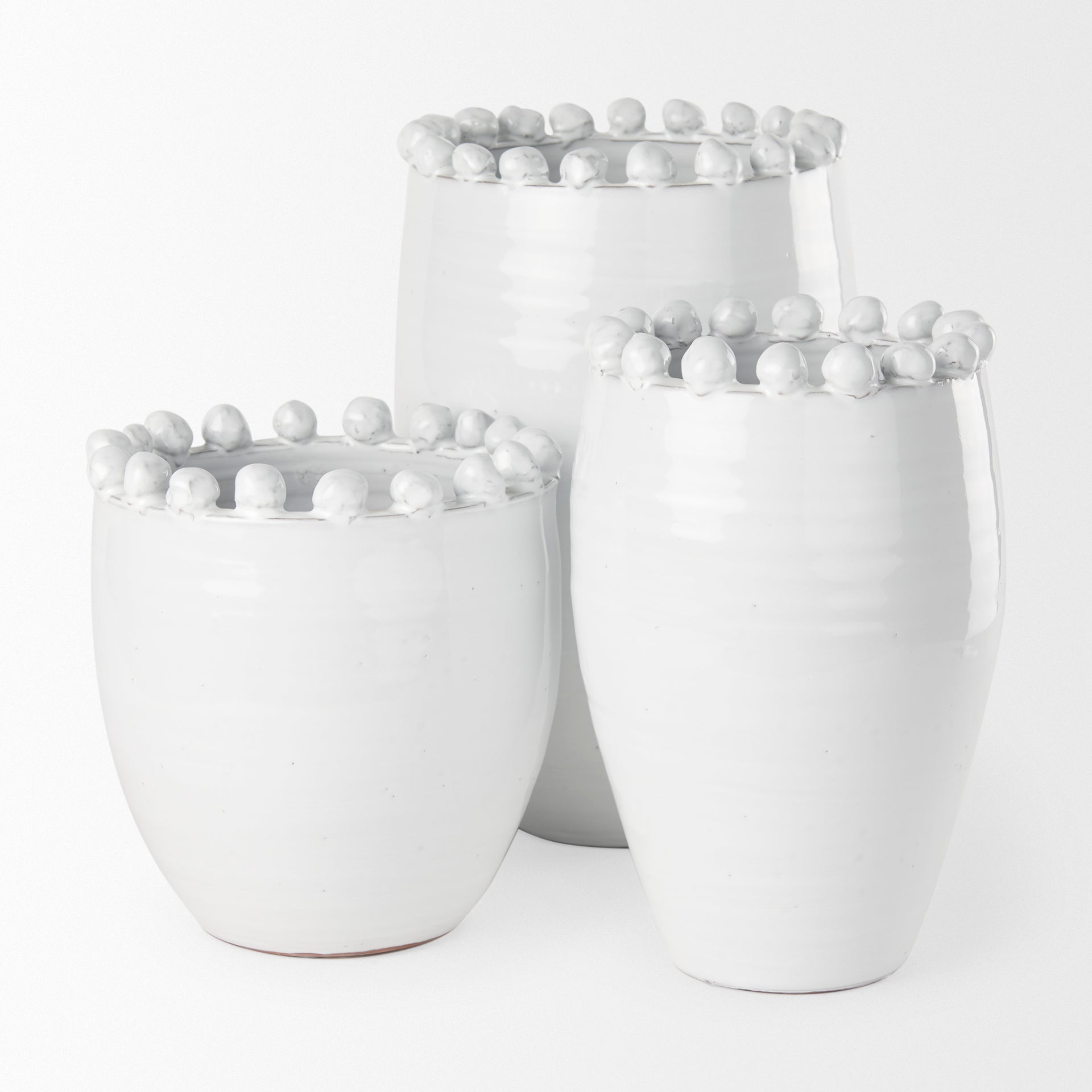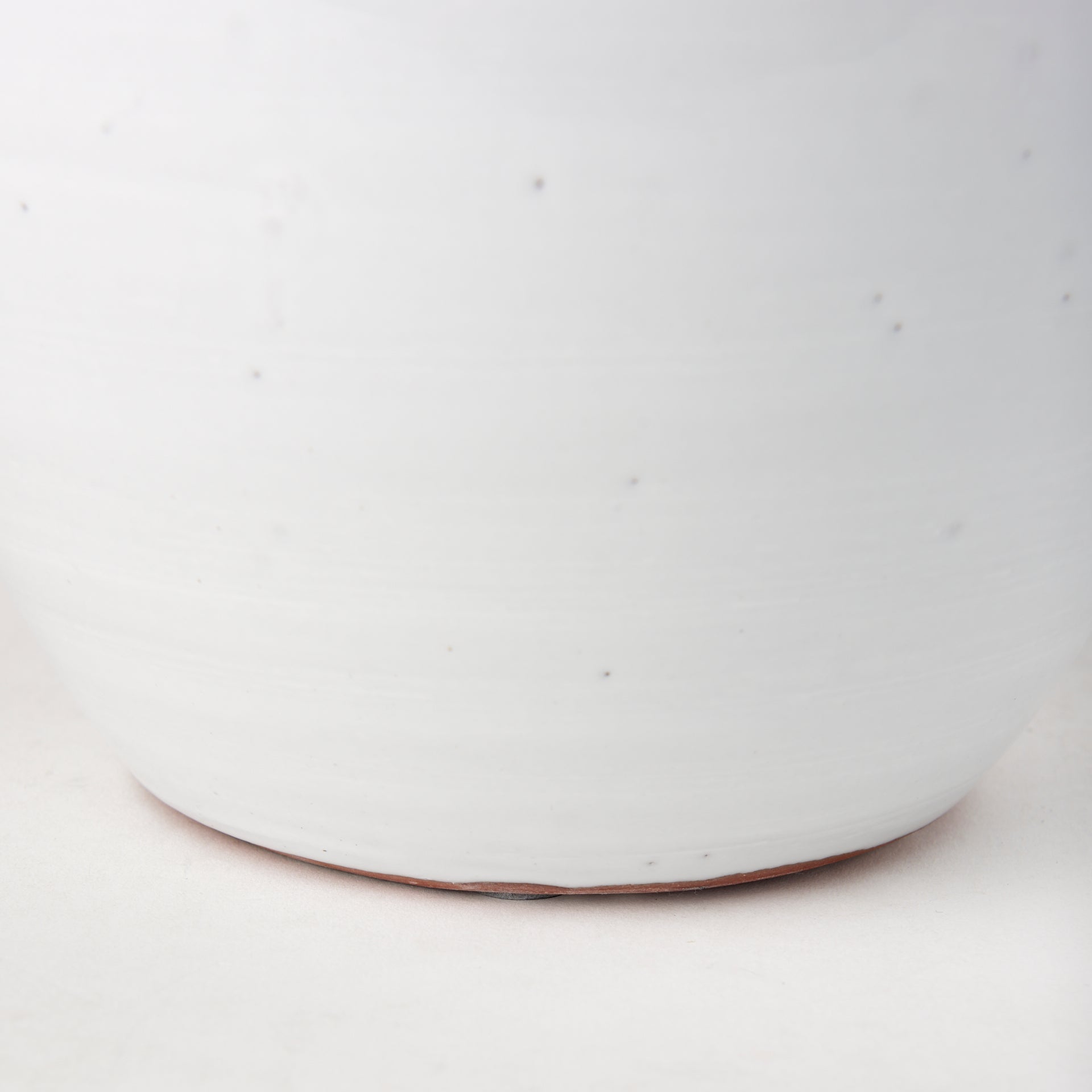 The small Basin Vase is a glazed ceramic vase with a milky, off-white finish.