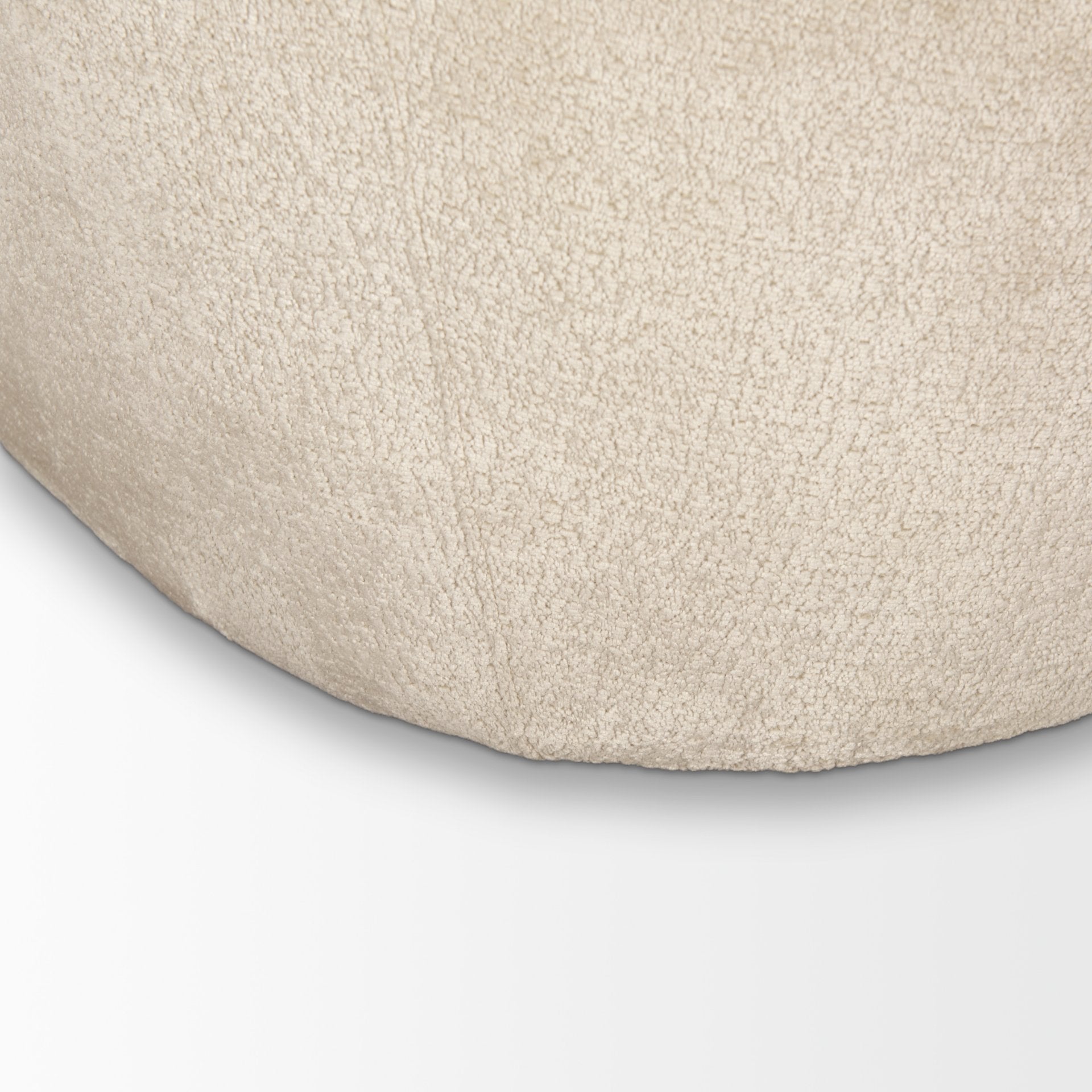 Beverly is a beige chenille accent chair with a chic, mod silhouette.