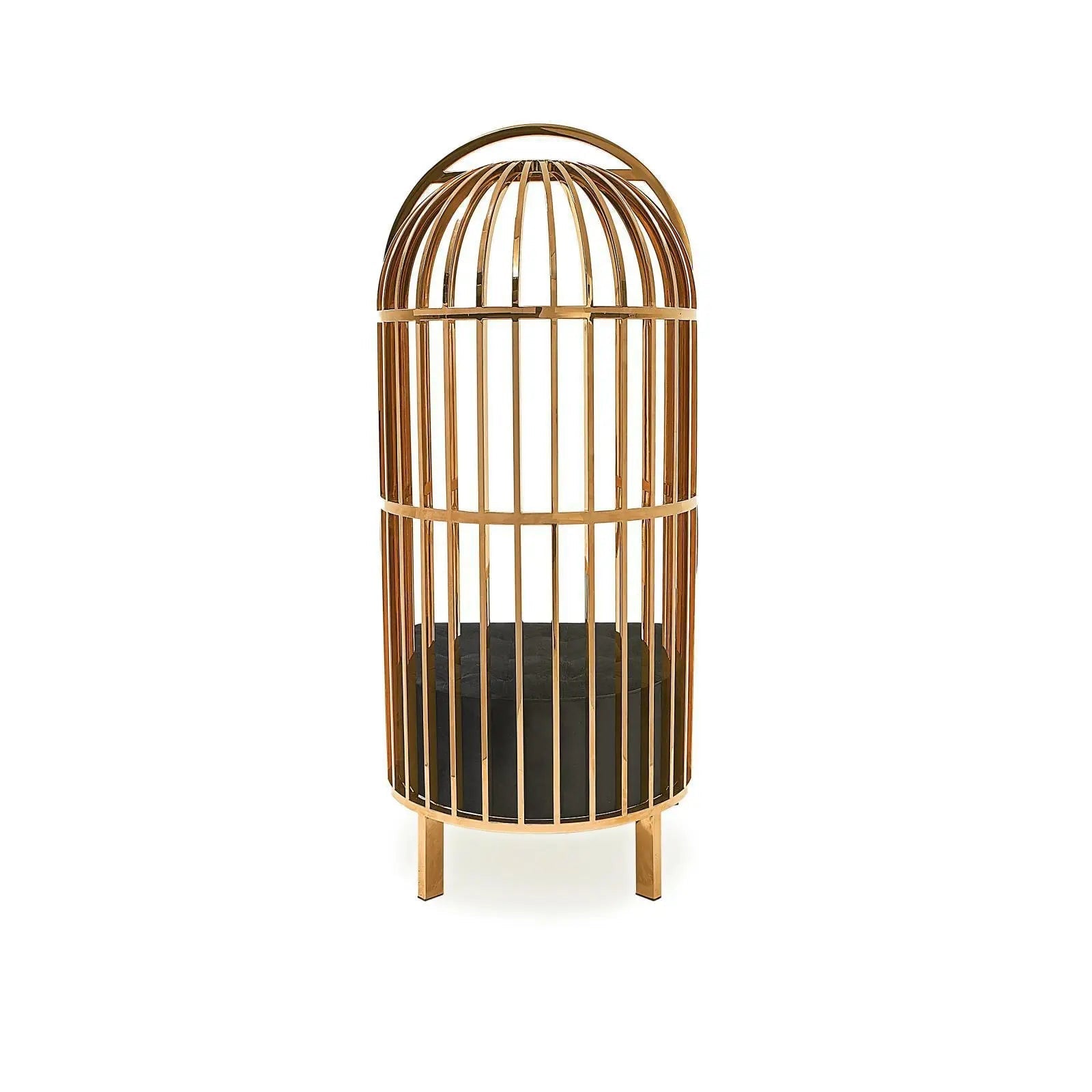 Cage accent chair by Roberto Grassie is the perfect statement piece for any space, inspired by a classic bird cage and finished with beautiful titanium gold stainless steel workmanship it adds the perfect photo moment for your space. The cage chair is upholstered in performance velvet with tufted details.