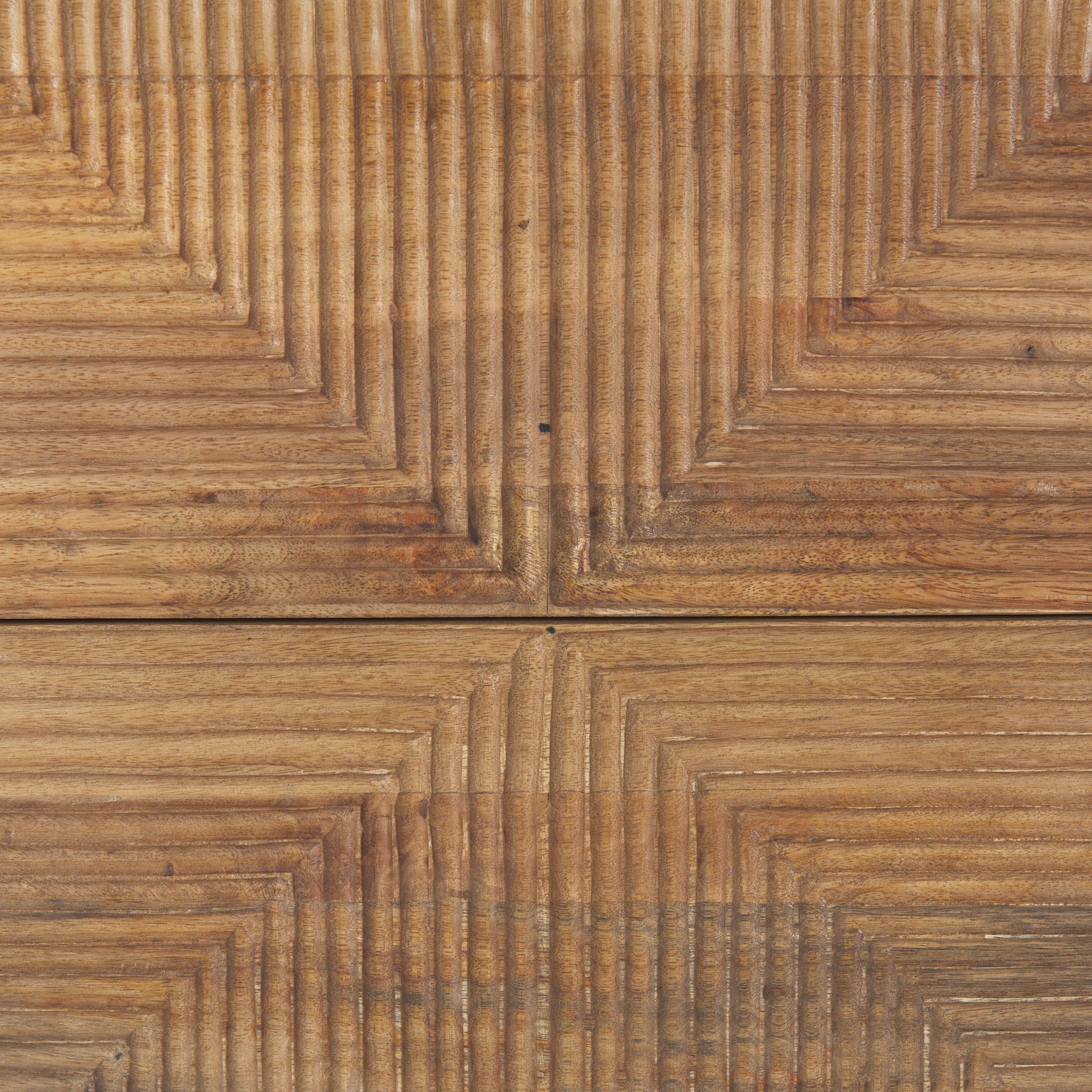 The two drawers that feature a linear motif with a horizontal and triangle patternΒ