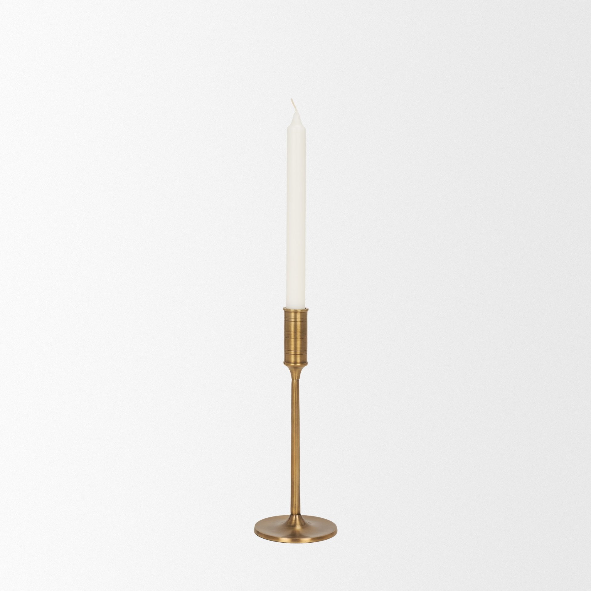 The Chantria Candle Holder is crafted from solid brass and showcases a vintage-inspired design with an adjustable height for versatile styling.