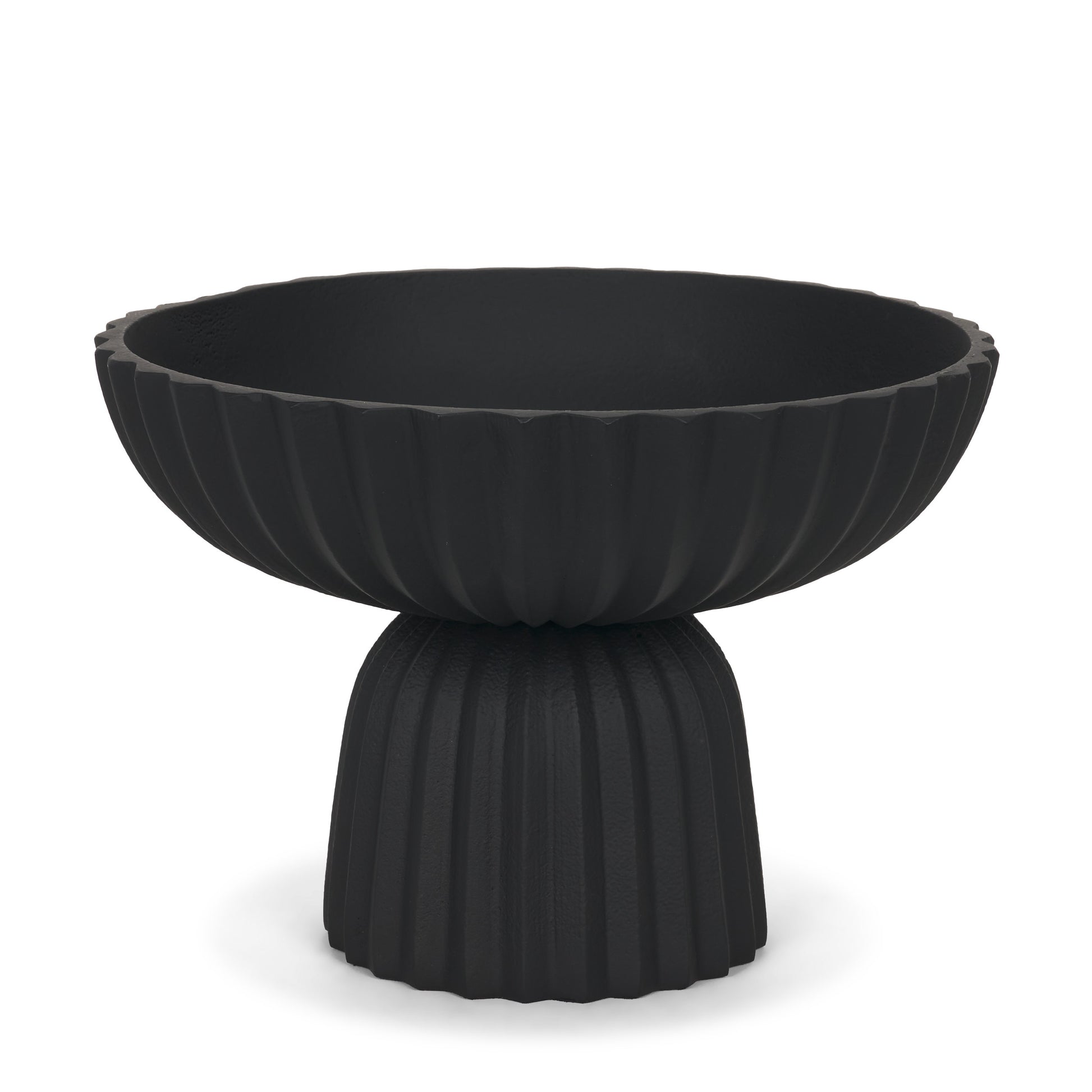 The Ciaran Decorative Bowl features a sculptural ribbed design, crafted from metal and finished in a timeless matte black powder coat.