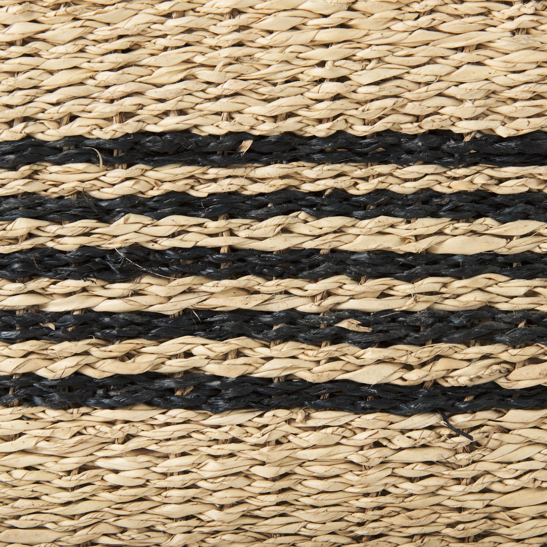 These baskets feature natural seagrass with black stripes and two round handles on either side.
