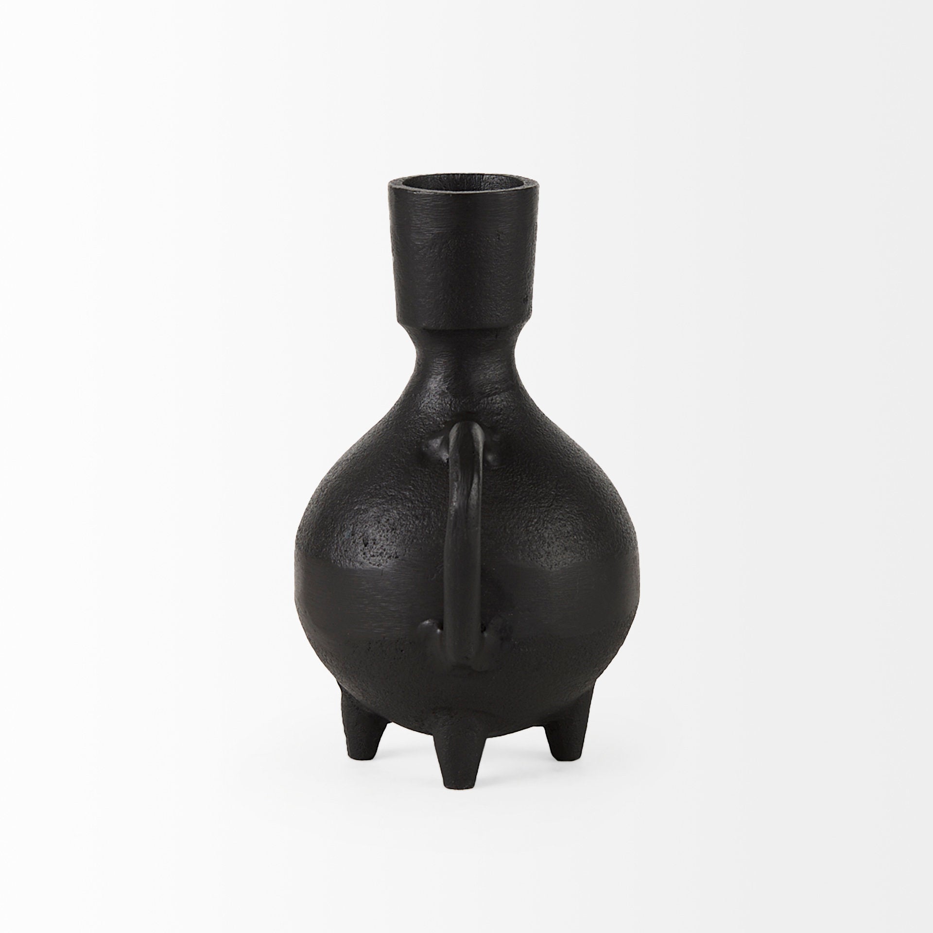 Cyrus I is a Black Spherical Vase with a flute, and is inspired by Siculan sites in South Italy.