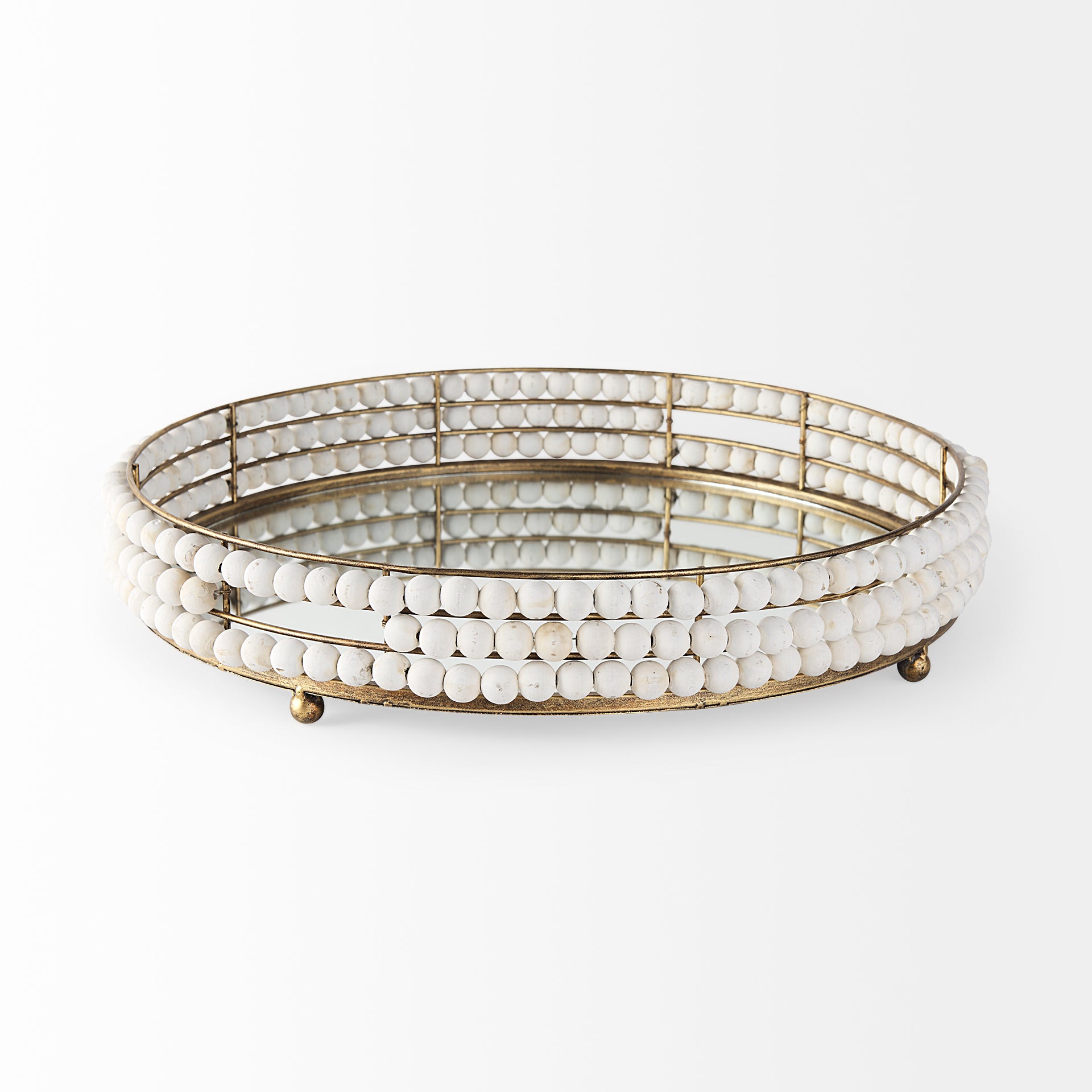The Decatur I's metal frame is finished in a radiant, antiqued-gold tone that is complemented by the white wooden bead details making this decorative tray a hit in your space.Β