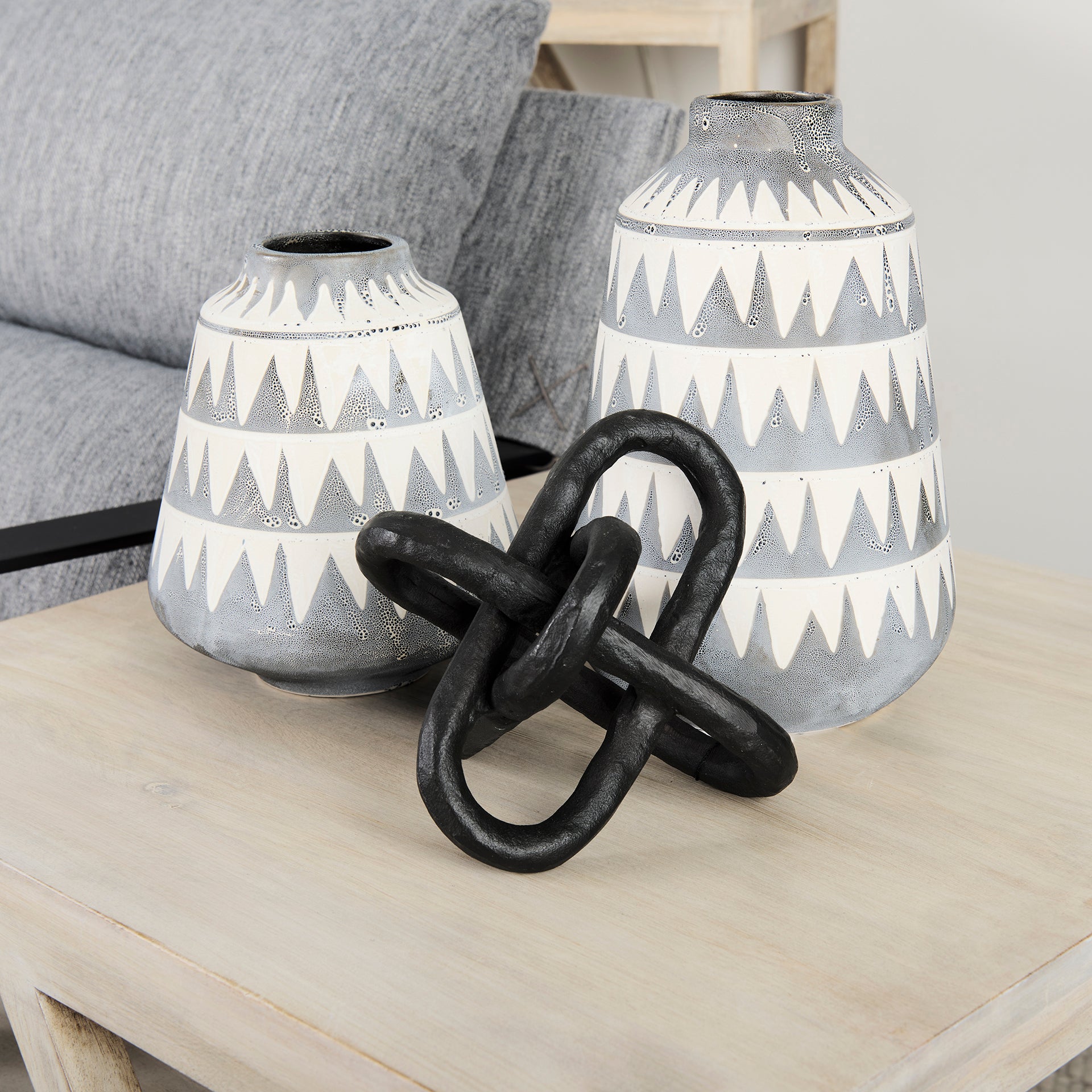 The Delaney is finished in a spectacular cream/grey colored tone with triangle details, making it a stunning vase that is sure to turn heads.Β