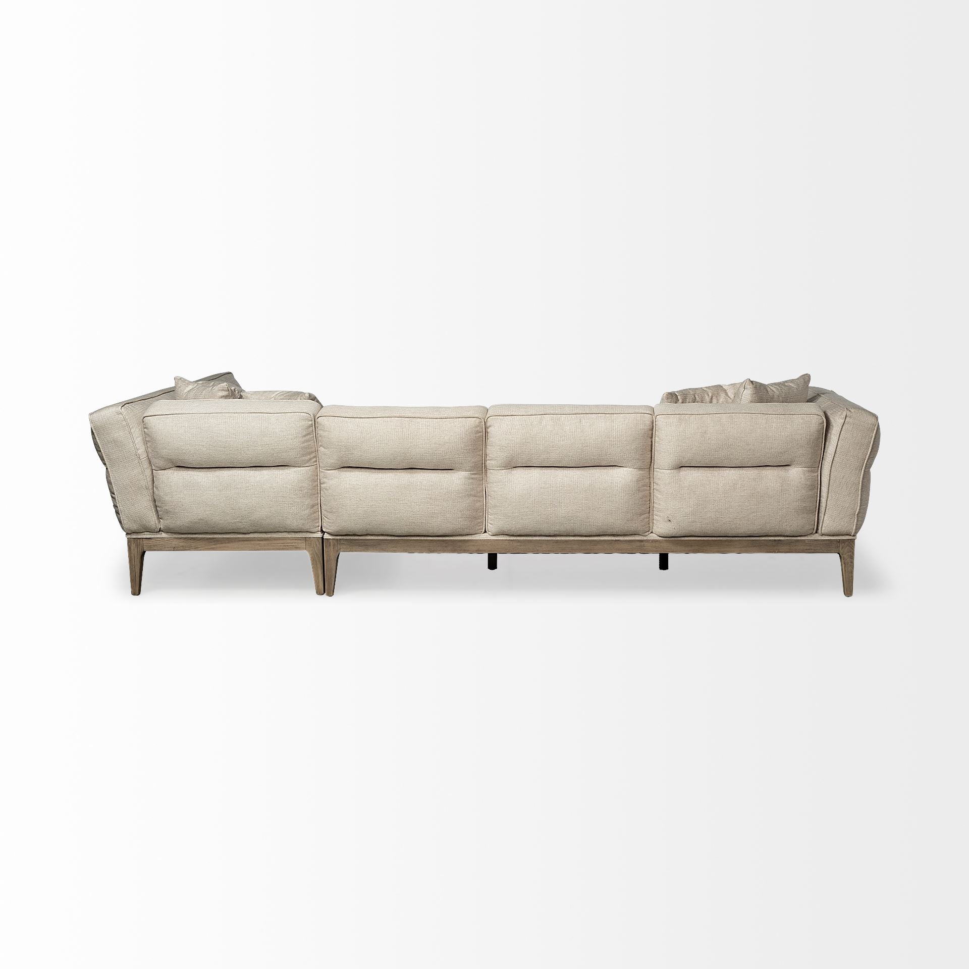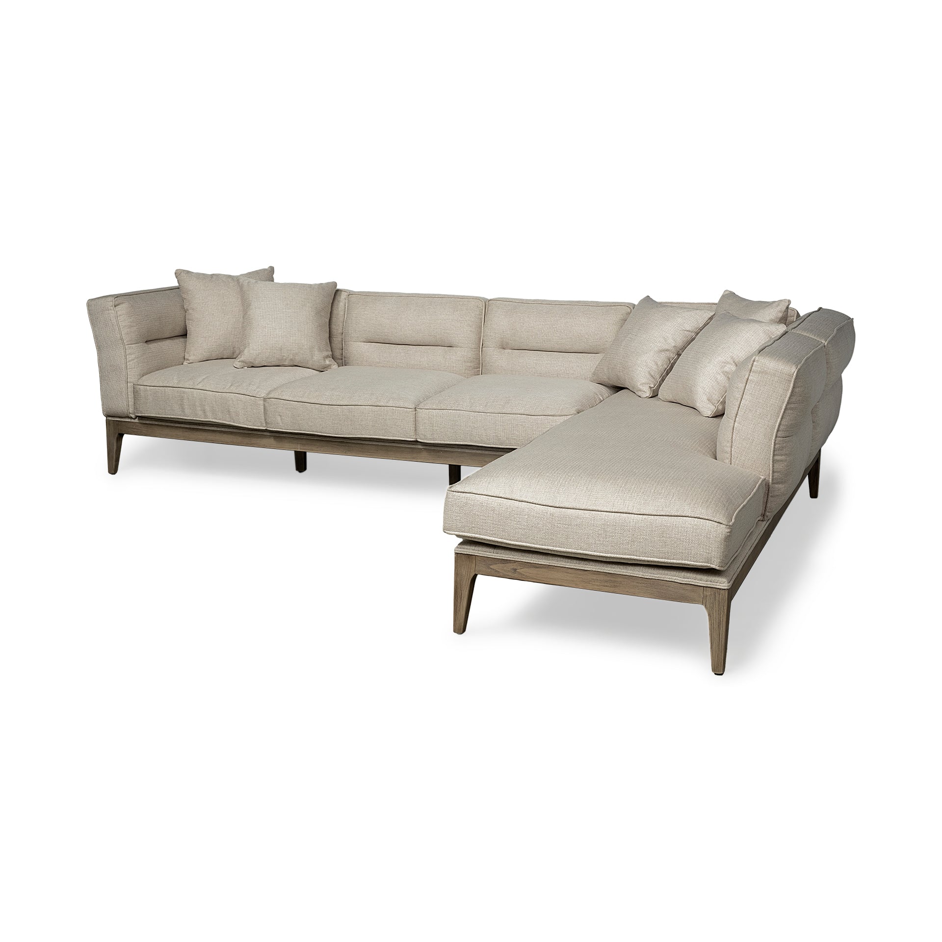 The Denali III sectional, wrapped in plush beige-toned fabric, offers unparalleled comfort and is guaranteed to have you lounging for hours.Β