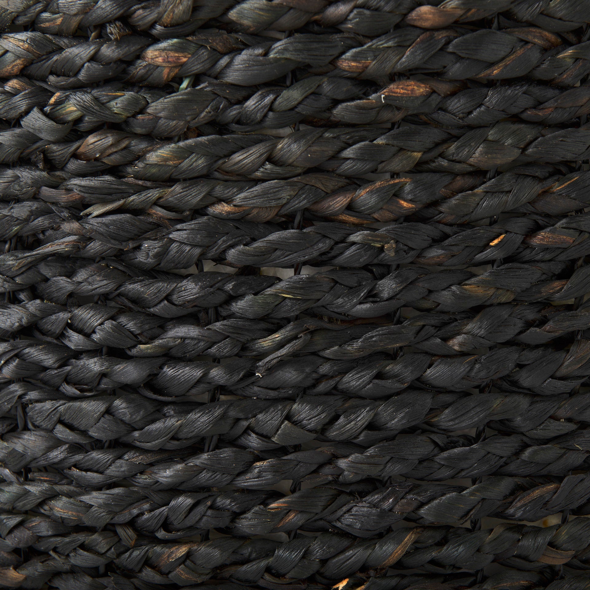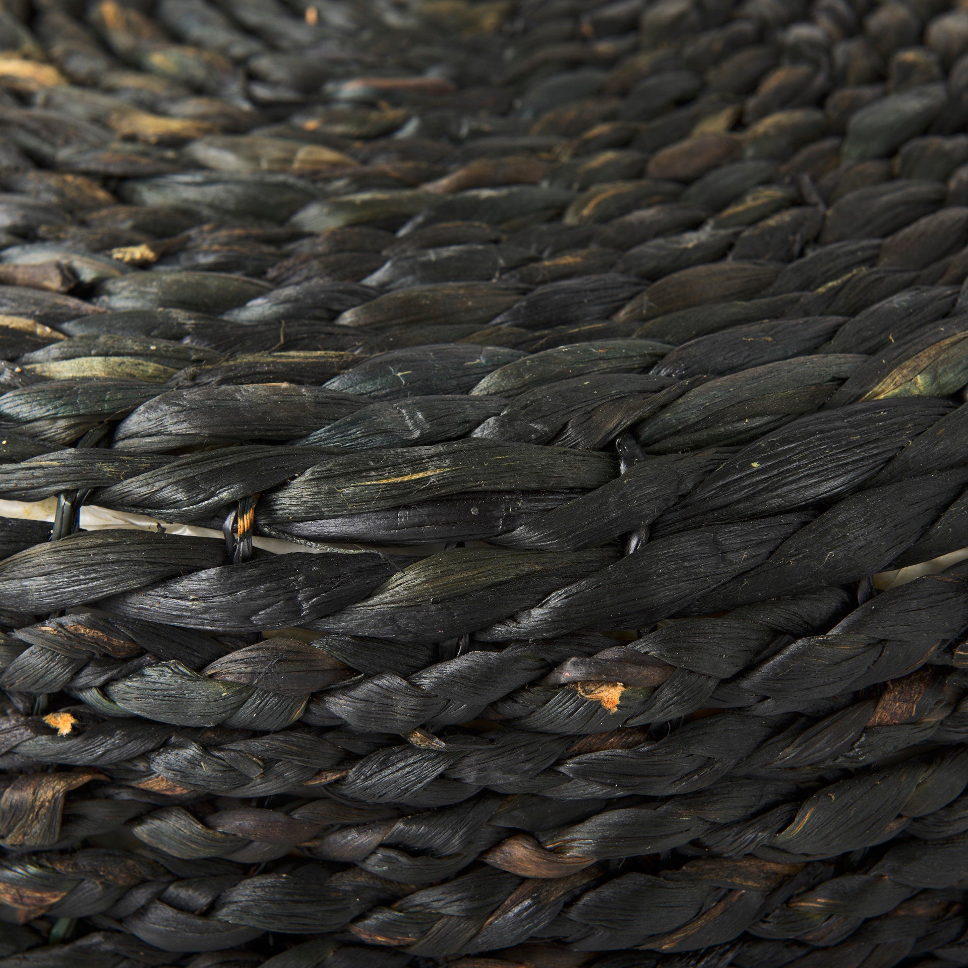 Dina 17.7L x 17.7W x 17.7H Black Cornhusk and Water Hyacinth Round Pouf