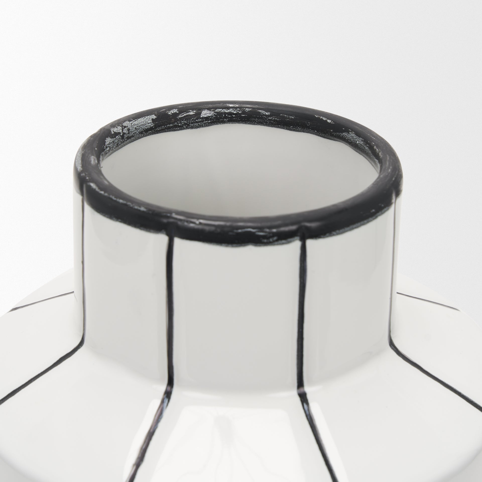 Dinah Small White w/ Black Stripes Ceramic Vase