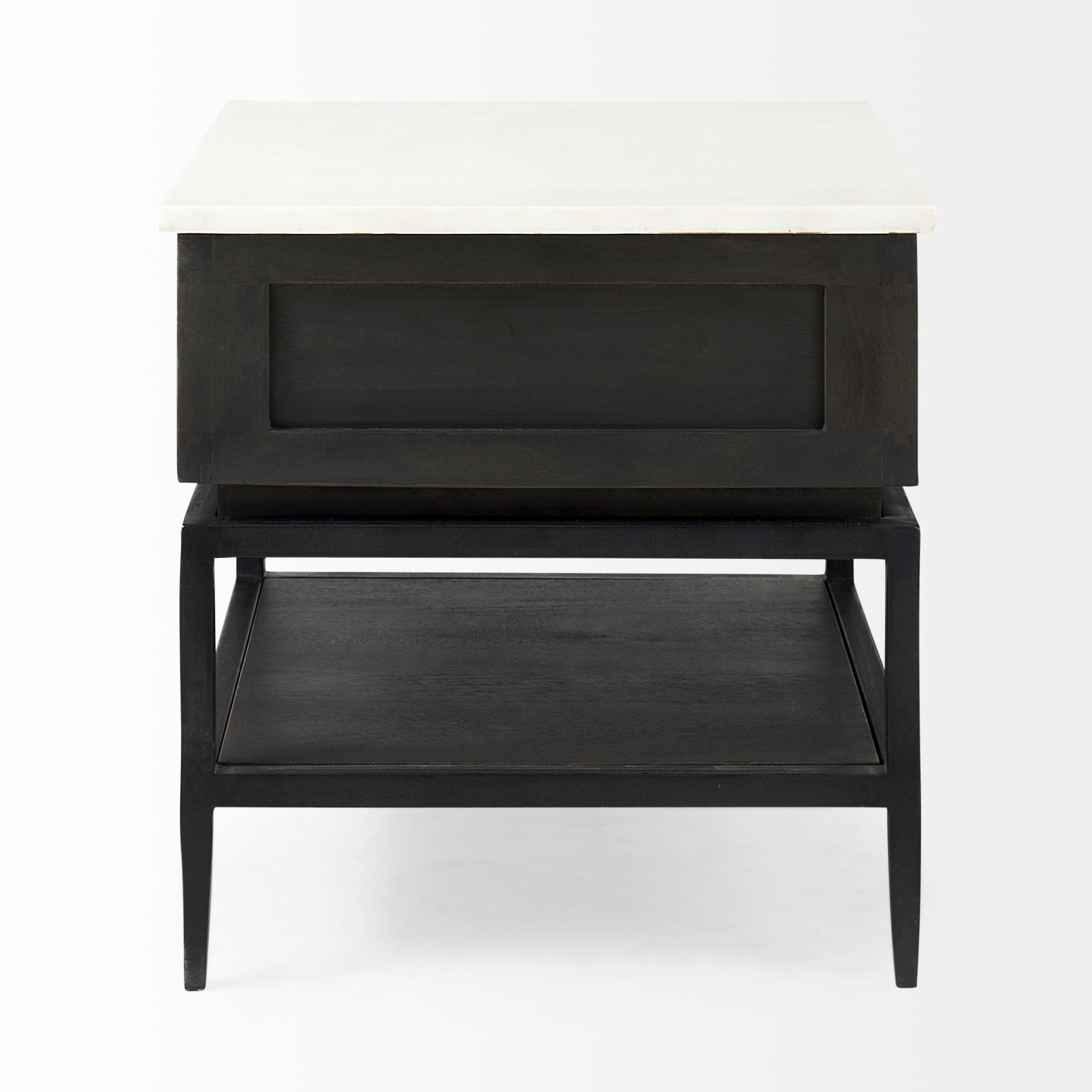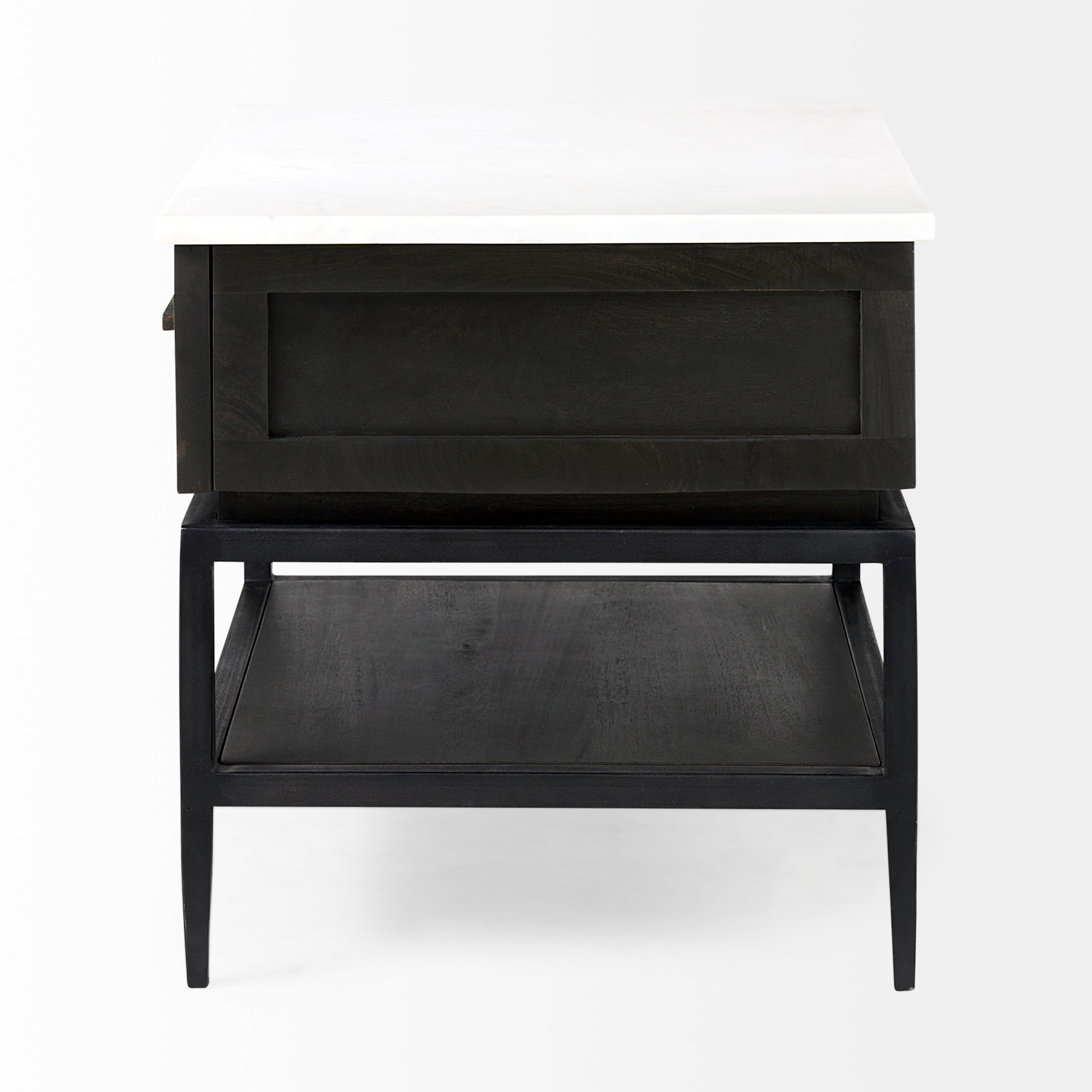 Divina Black-Brown Wood w/ White Marble Top and Black Metal Base 1 Drawer Side Table