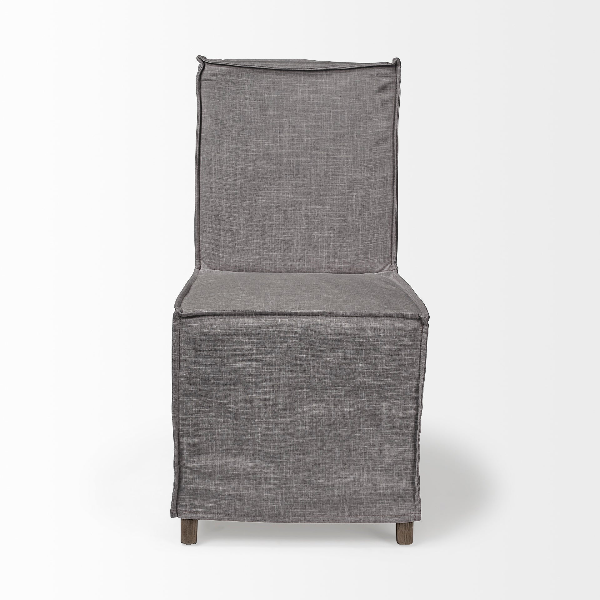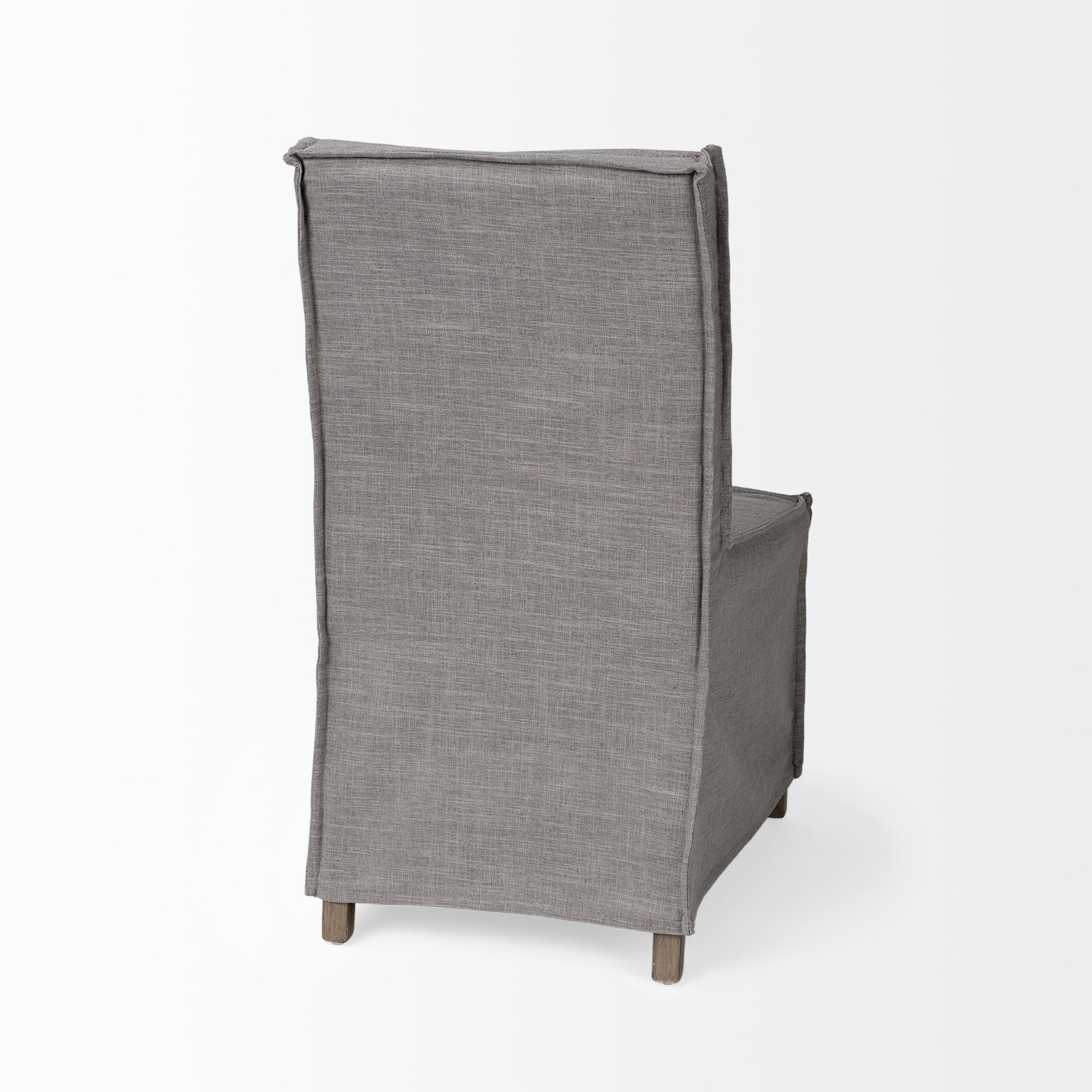 Elbert I Grey Fabric Slip-Cover Brown Wooden Base Dining Chair