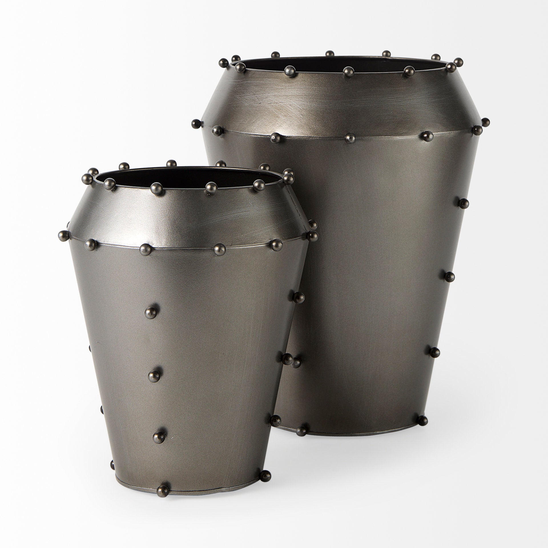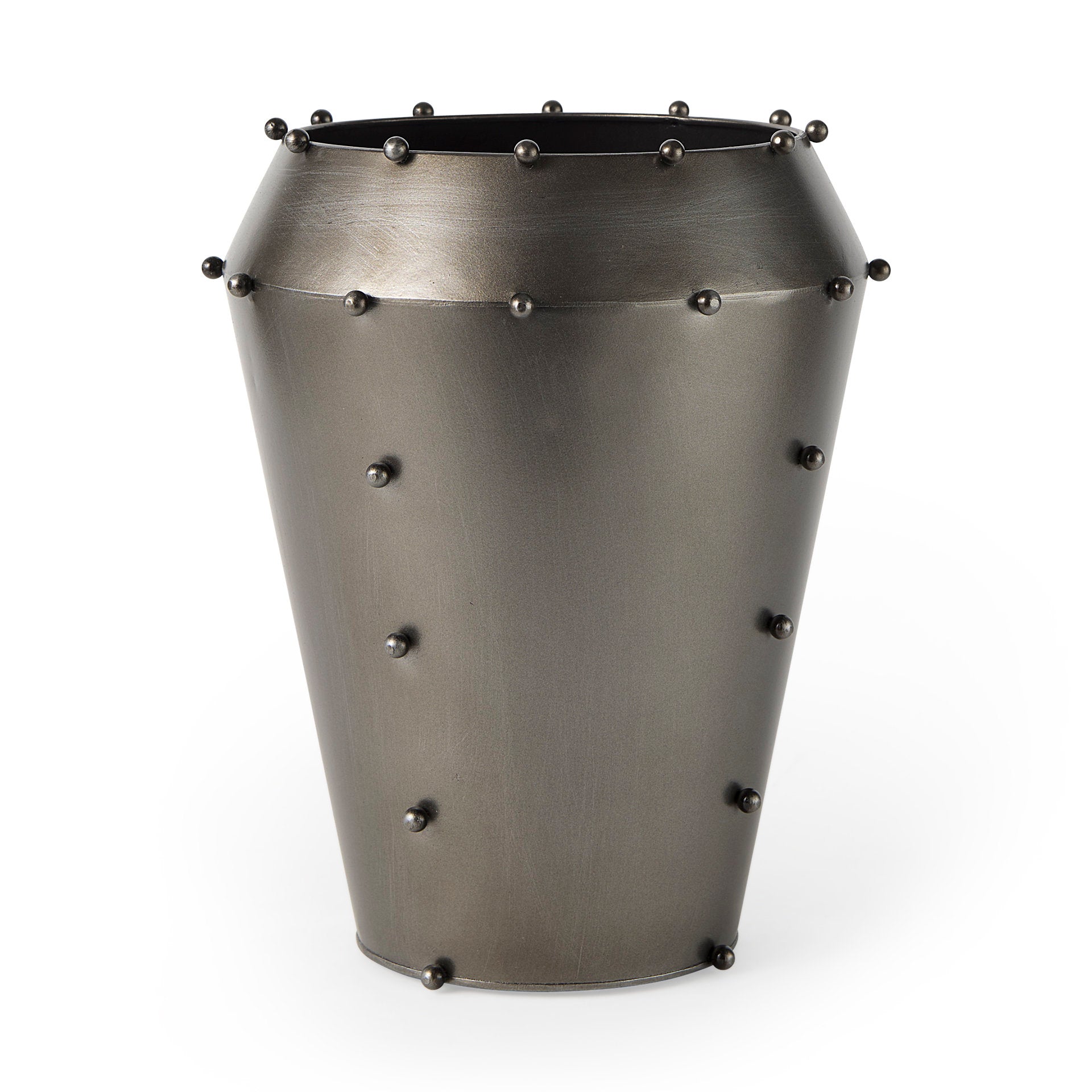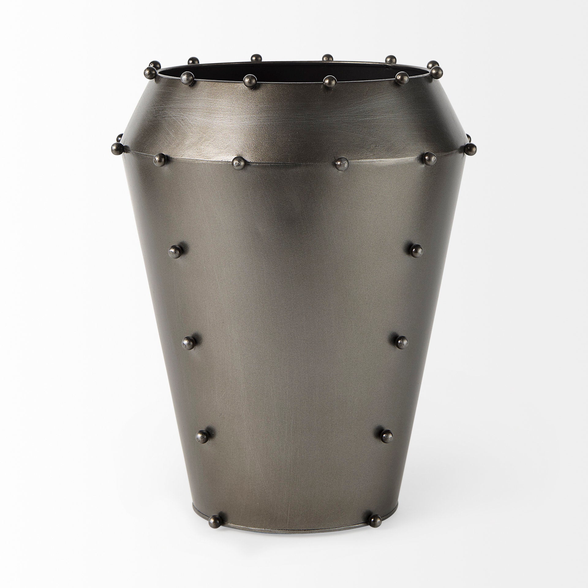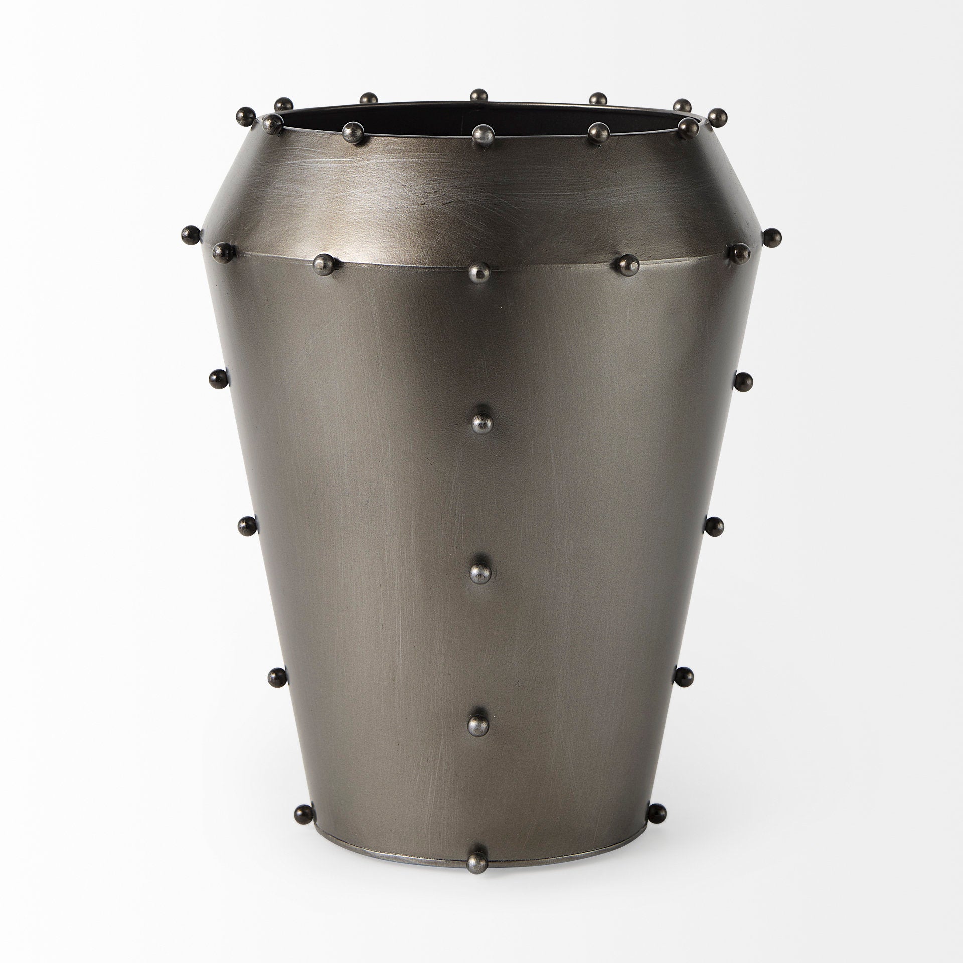 Elio 12.2H Large Gun Metal Gray Metal W/Studs Vase