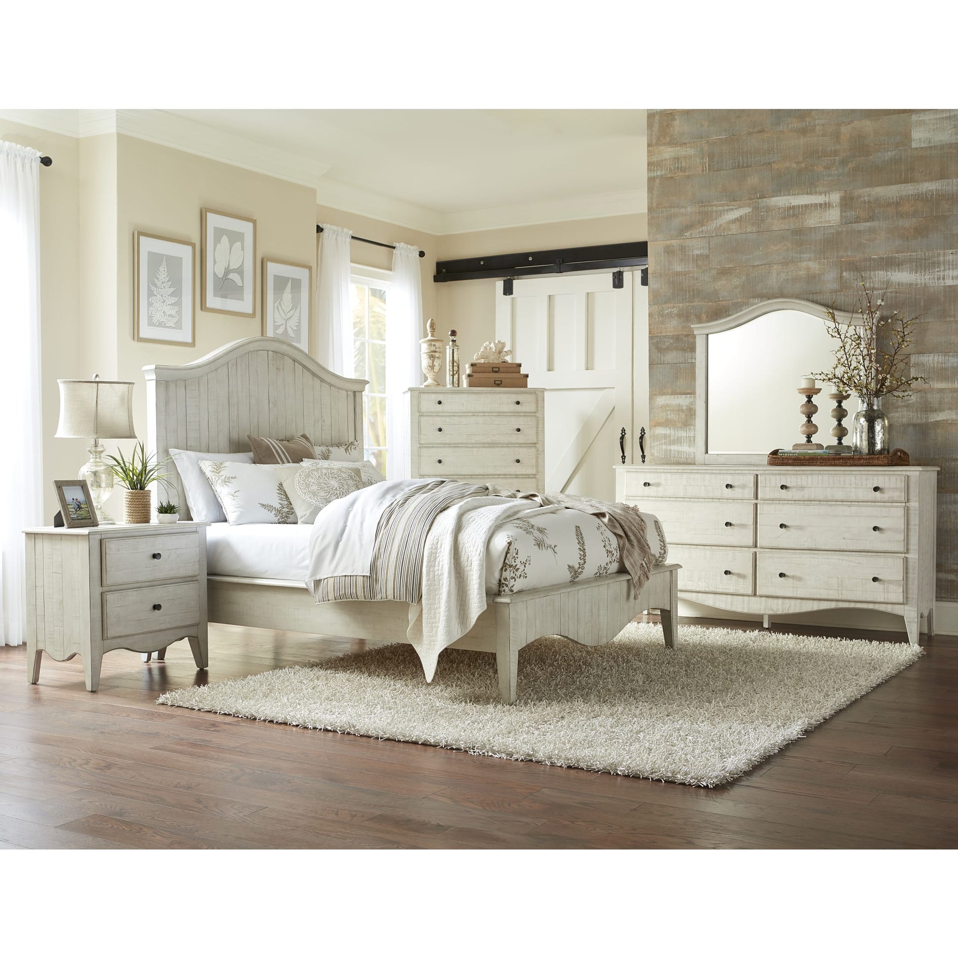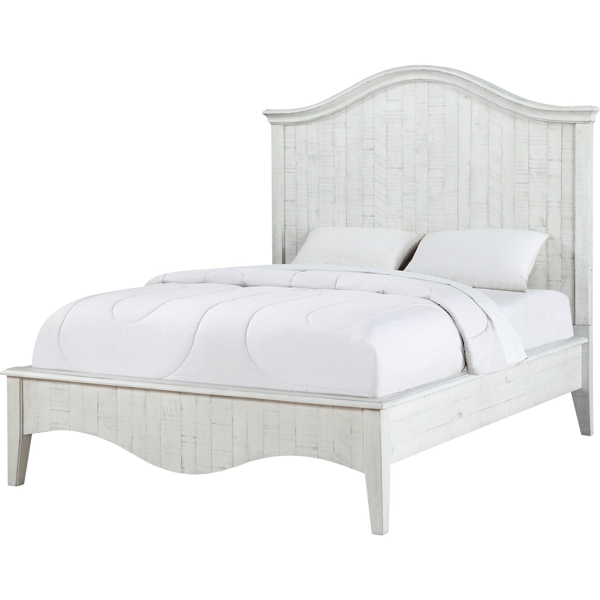 Rustic detail. With its chic, scalloped edges and weathered White Wash finish, the Ella collection transforms the bedroom into a romantic retreat. Planks of solid wood feature unique texture, knot and grain patterns that boost the rustic appeal of each piece, while angled feet and contrasting oil rubbed bronze drawer pulls make an instant style statement.