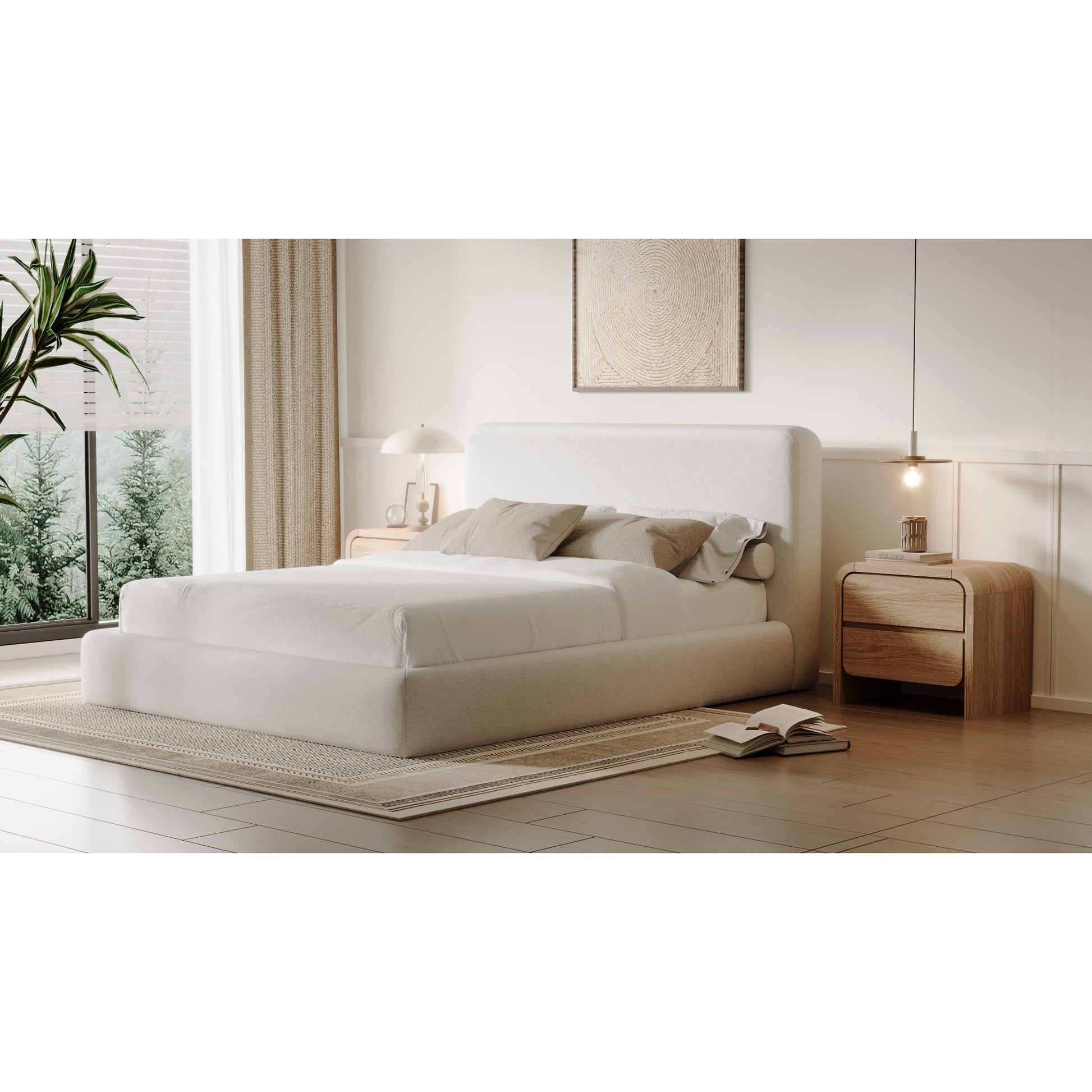 Elora Upholstered Platform Bed in Whitewashed Chenille
