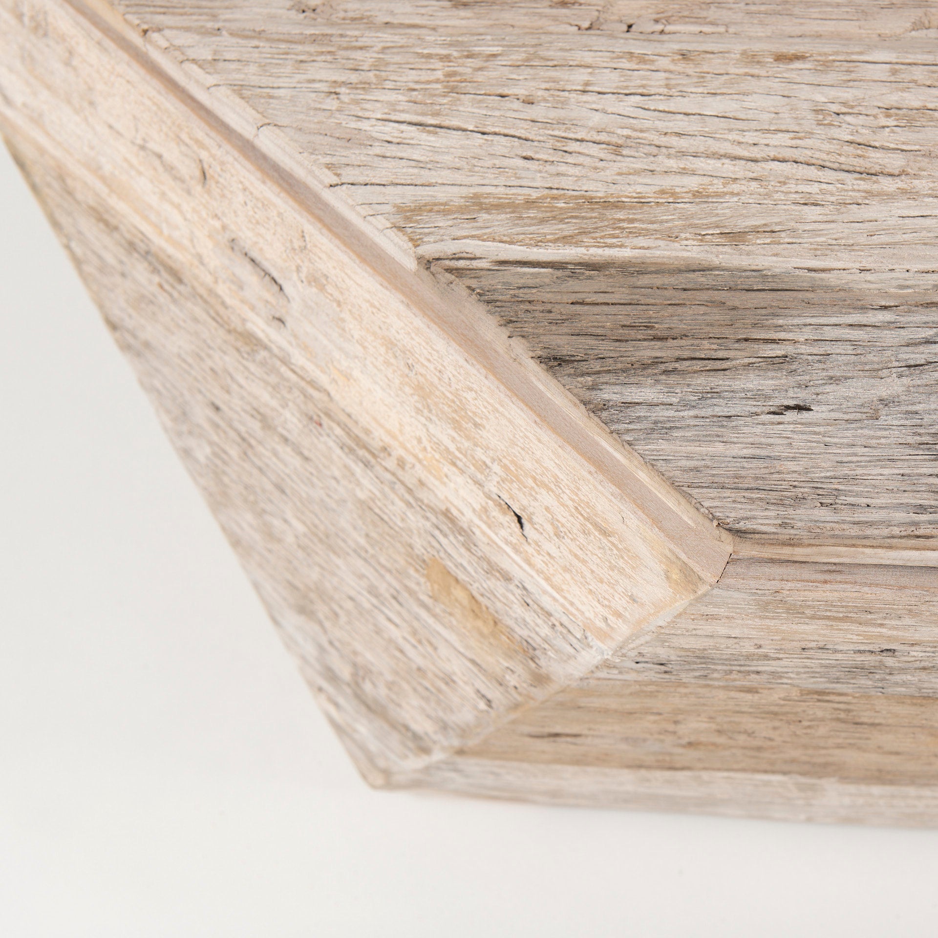 With a pinkish-hue whitewashed finish that accentuates the lines, cracks and knots in the reclaimed wood, the Esagono is a beautifully weathered piece. Blends effortlessly into Bohemian interiors and also fits well in Coastal and Tropical styled homes.Β