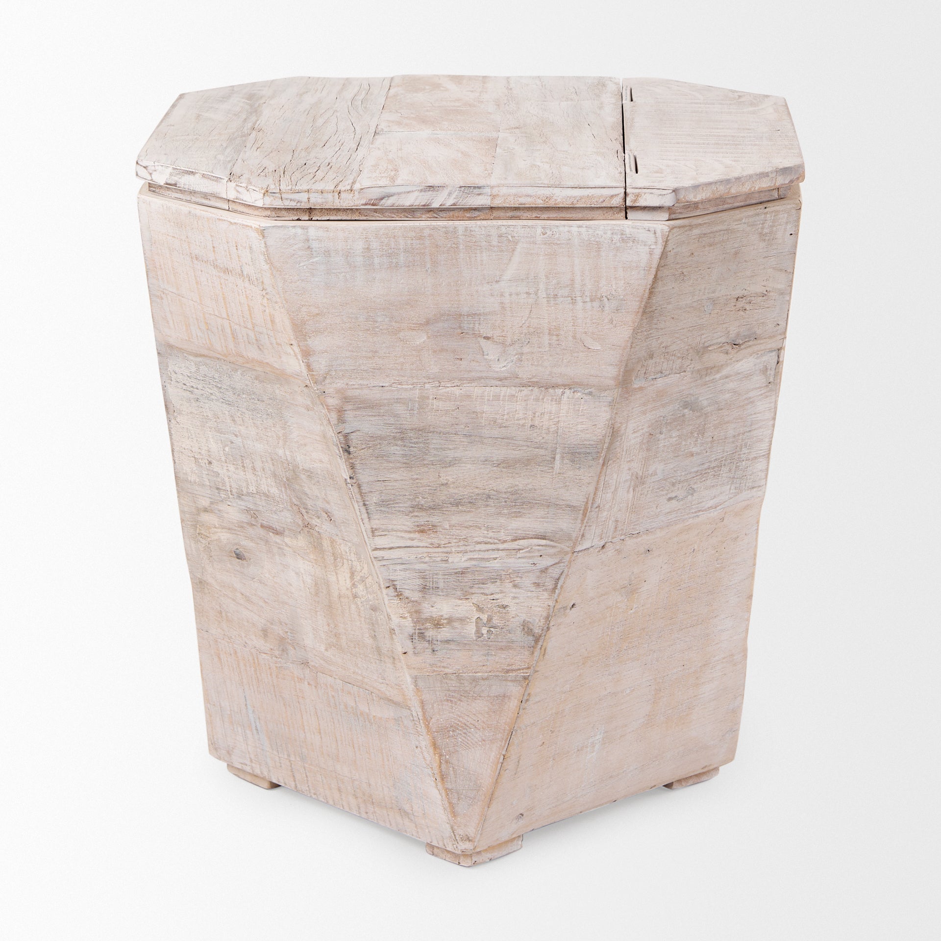 Esagono Octagonal Reclaimed Wood End/Side Table w/ Storage