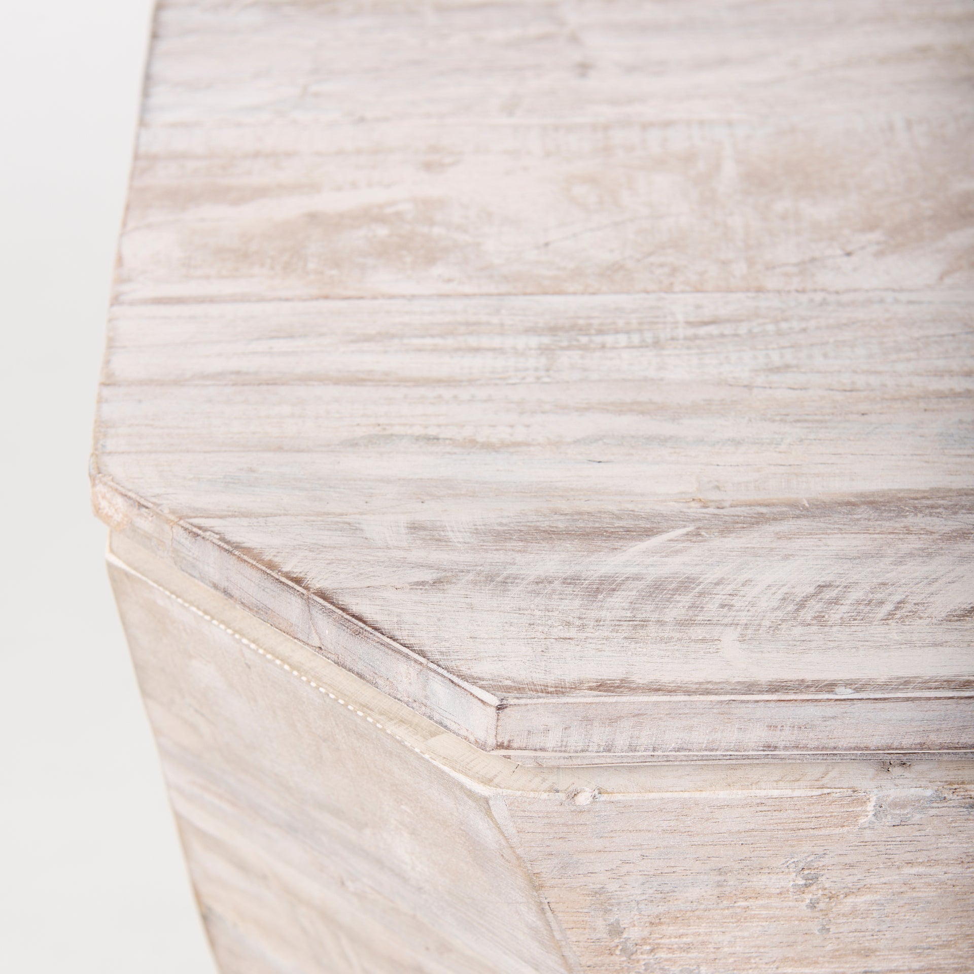 With a pinkish-hue whitewashed finish that accentuates the lines, cracks and knots in the reclaimed wood, the Esagono is a beautifully weathered piece. Blends effortlessly into Bohemian interiors and also fits well in Coastal and Tropical styled homes.Β