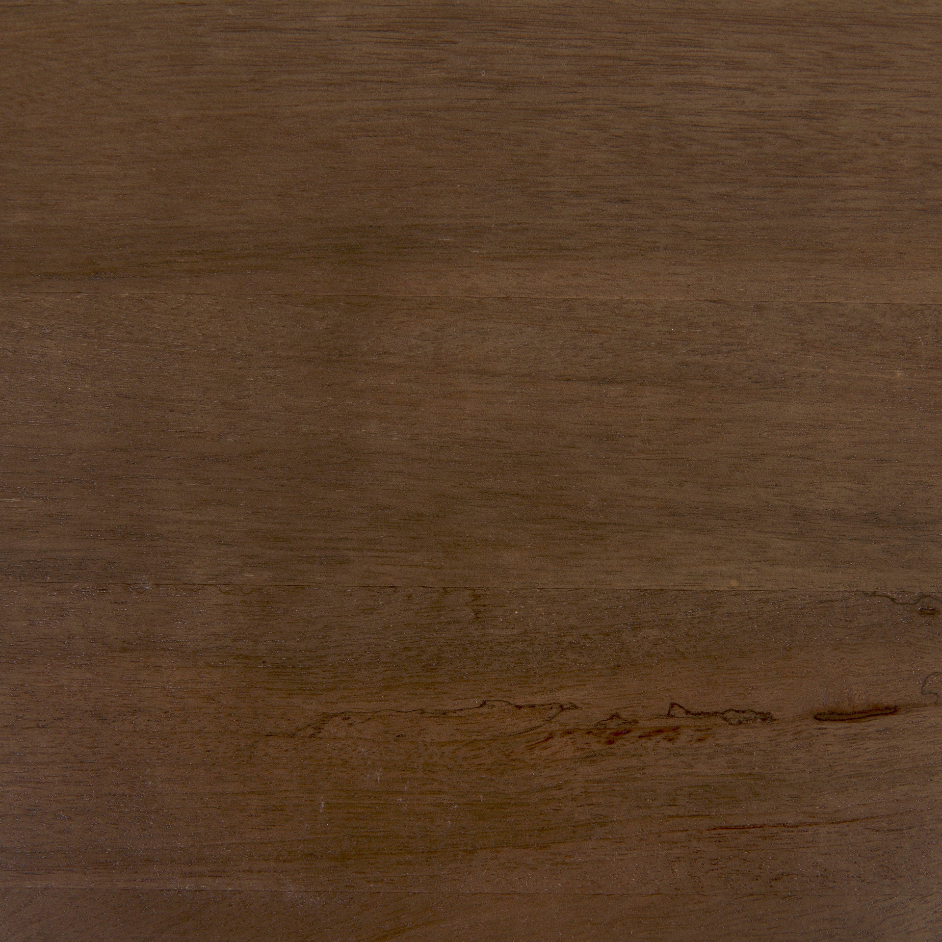Not too dark nor too light, the wood is smooth textured with a medium brown finish that highlights its natural beauty. The iron base features a subtle, antique nickel finish.Β