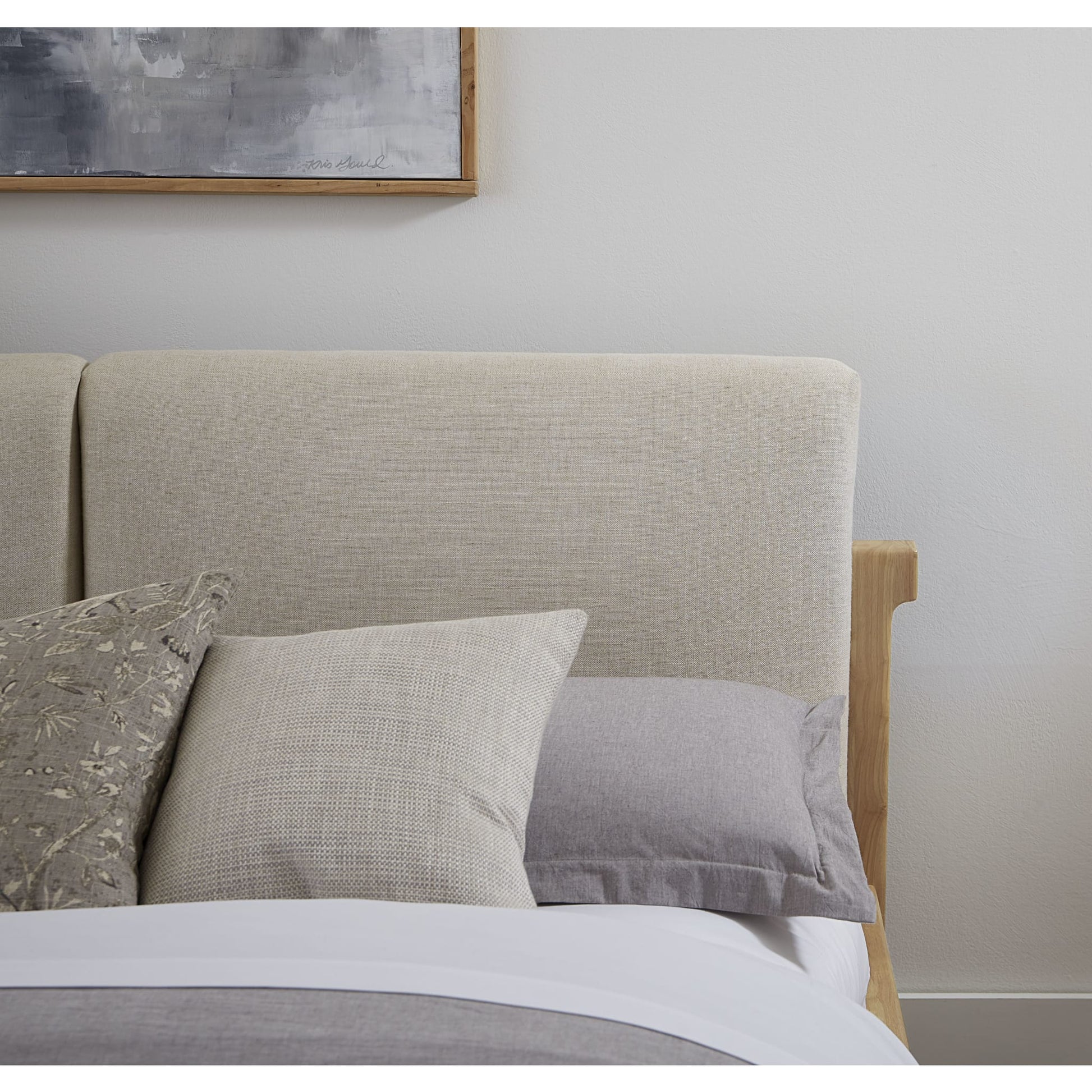 - Made from linen upholstery and solid Rubberwood
