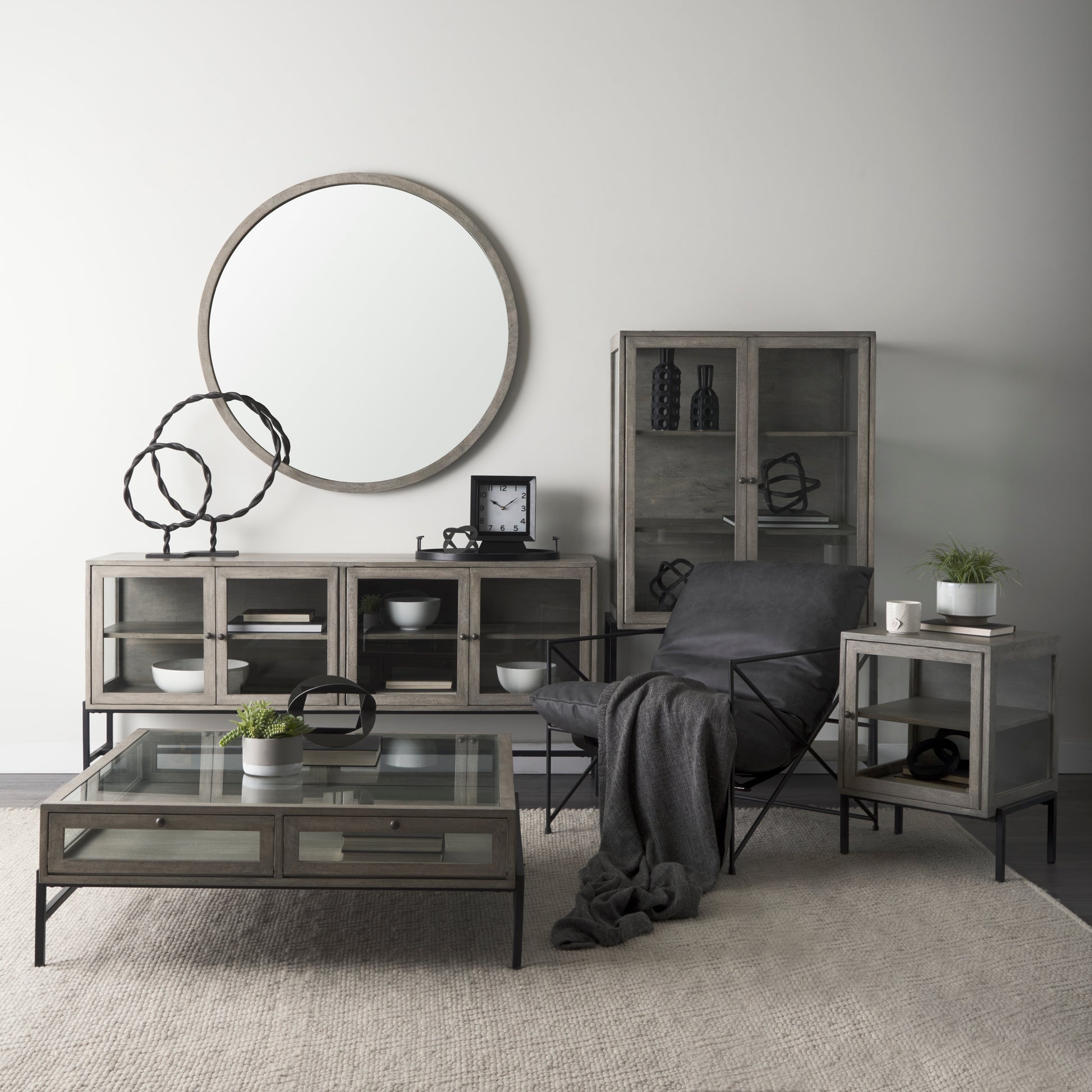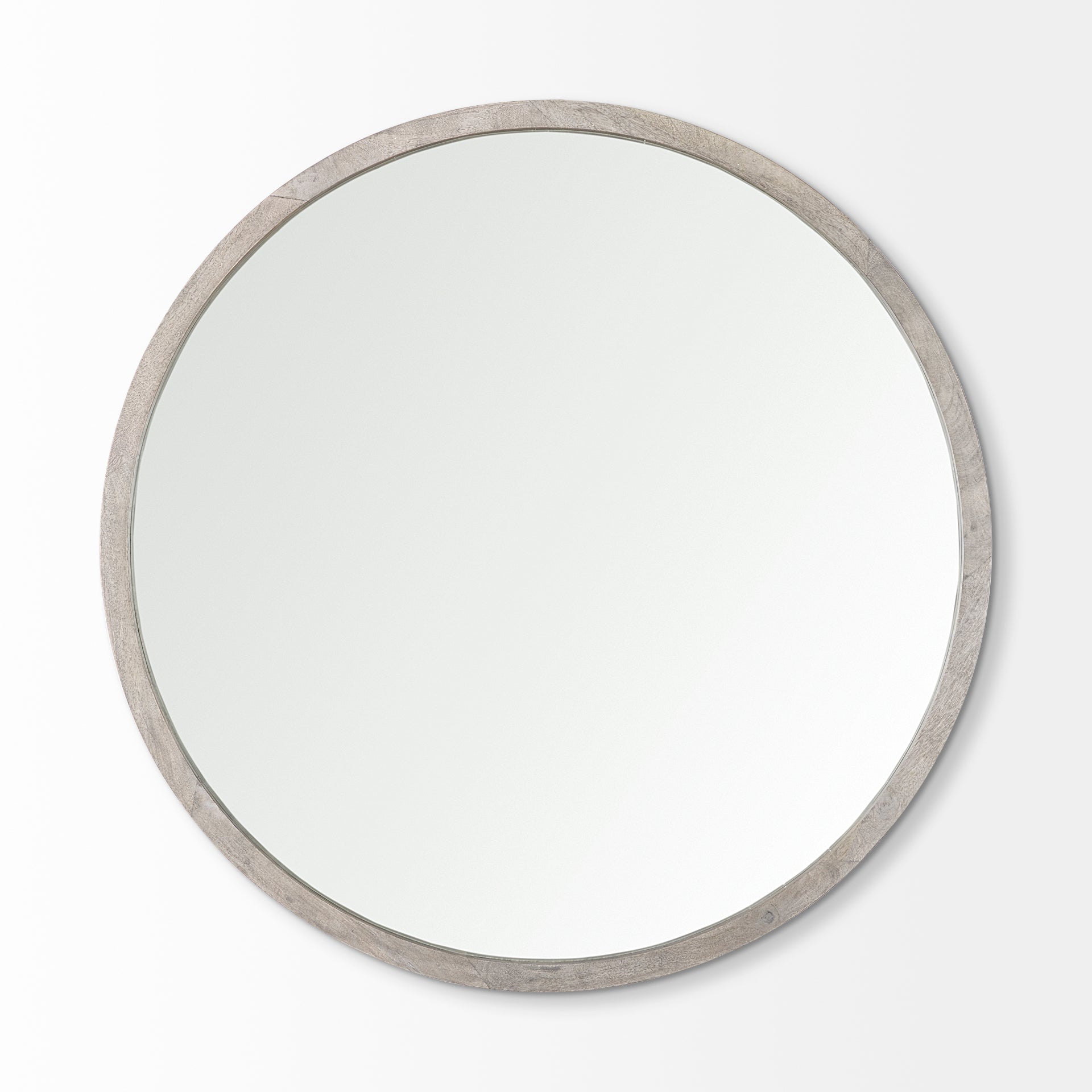 Gambit 46" Round Gray Wash Wood Frame Wall Mirror