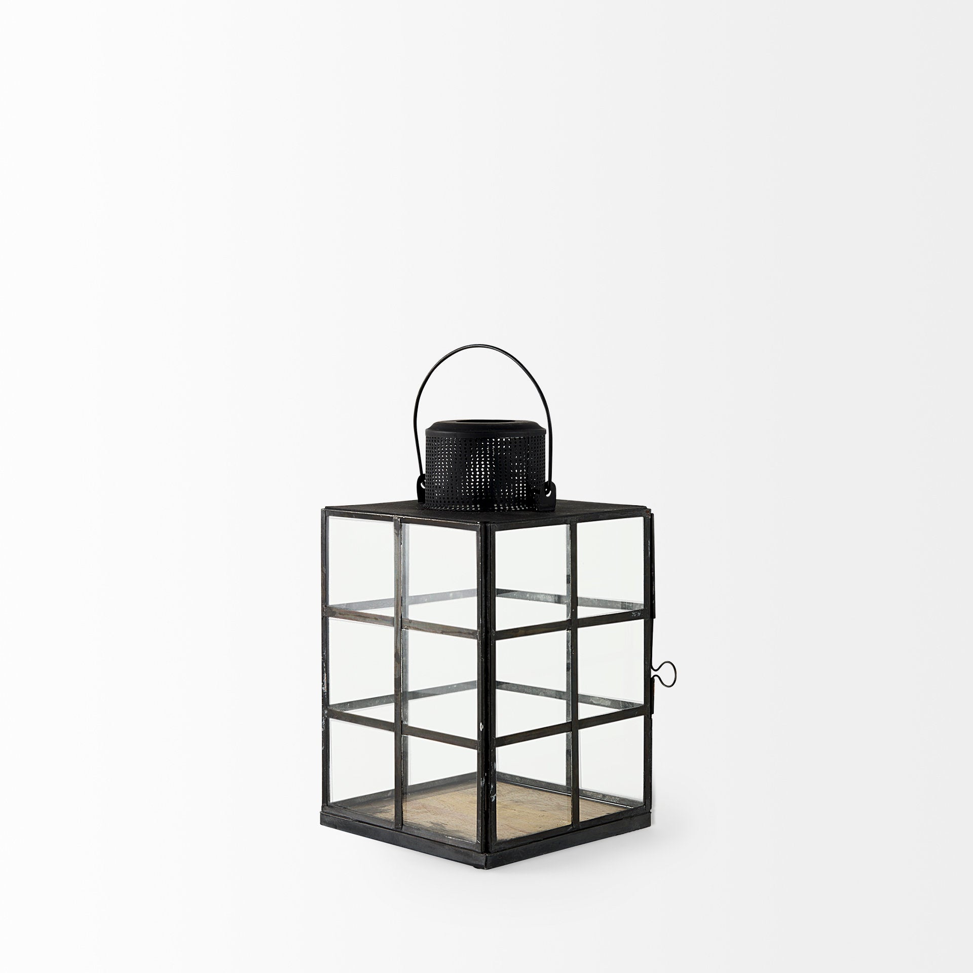 Gamfield 6.1L x 6.1W x 10.6H Small Black Metal and Glass Lantern