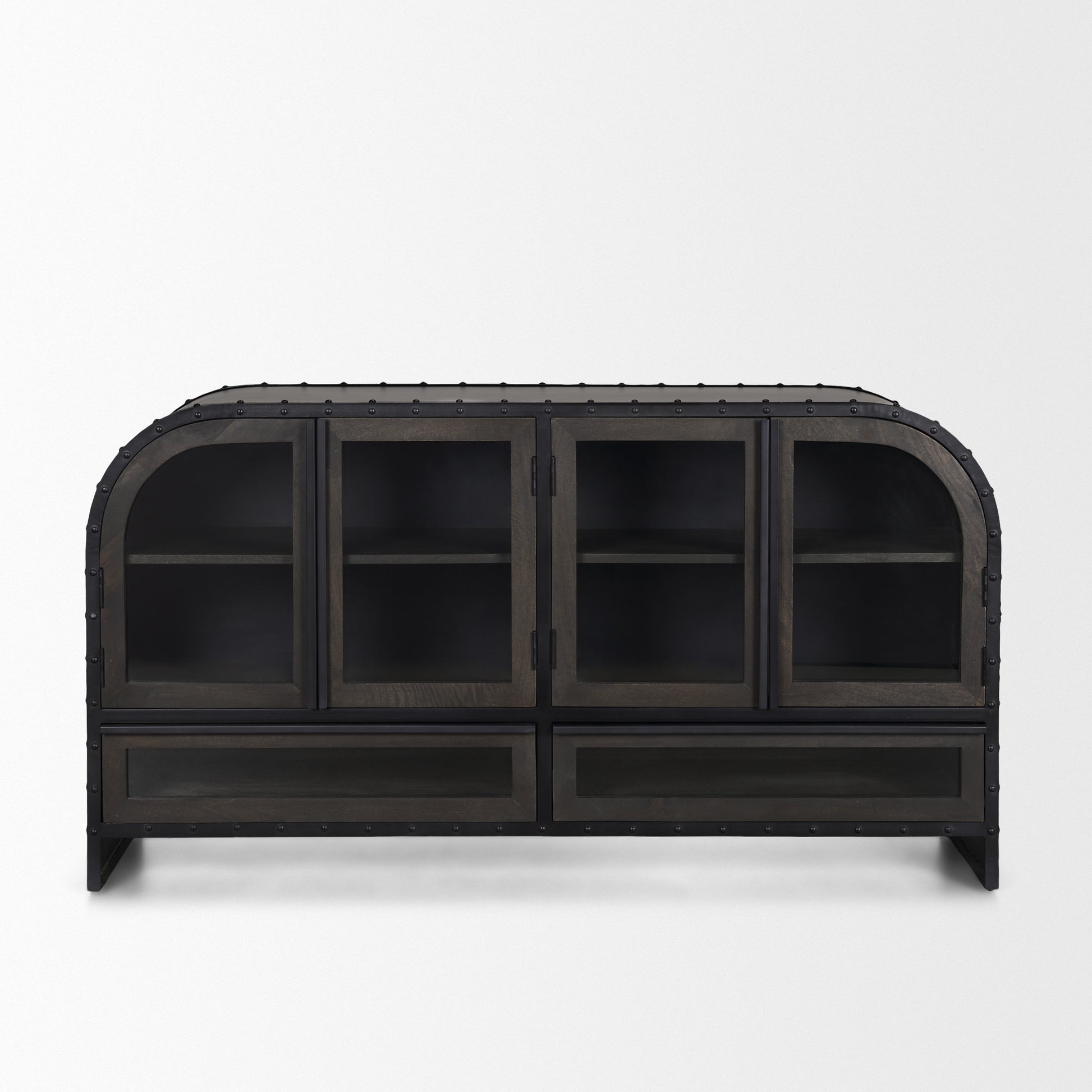 Gehry I 62.3x16.5 Black Metal Frame w/Wood Accent 4 Cabinet Door Two Drawer Sideboard