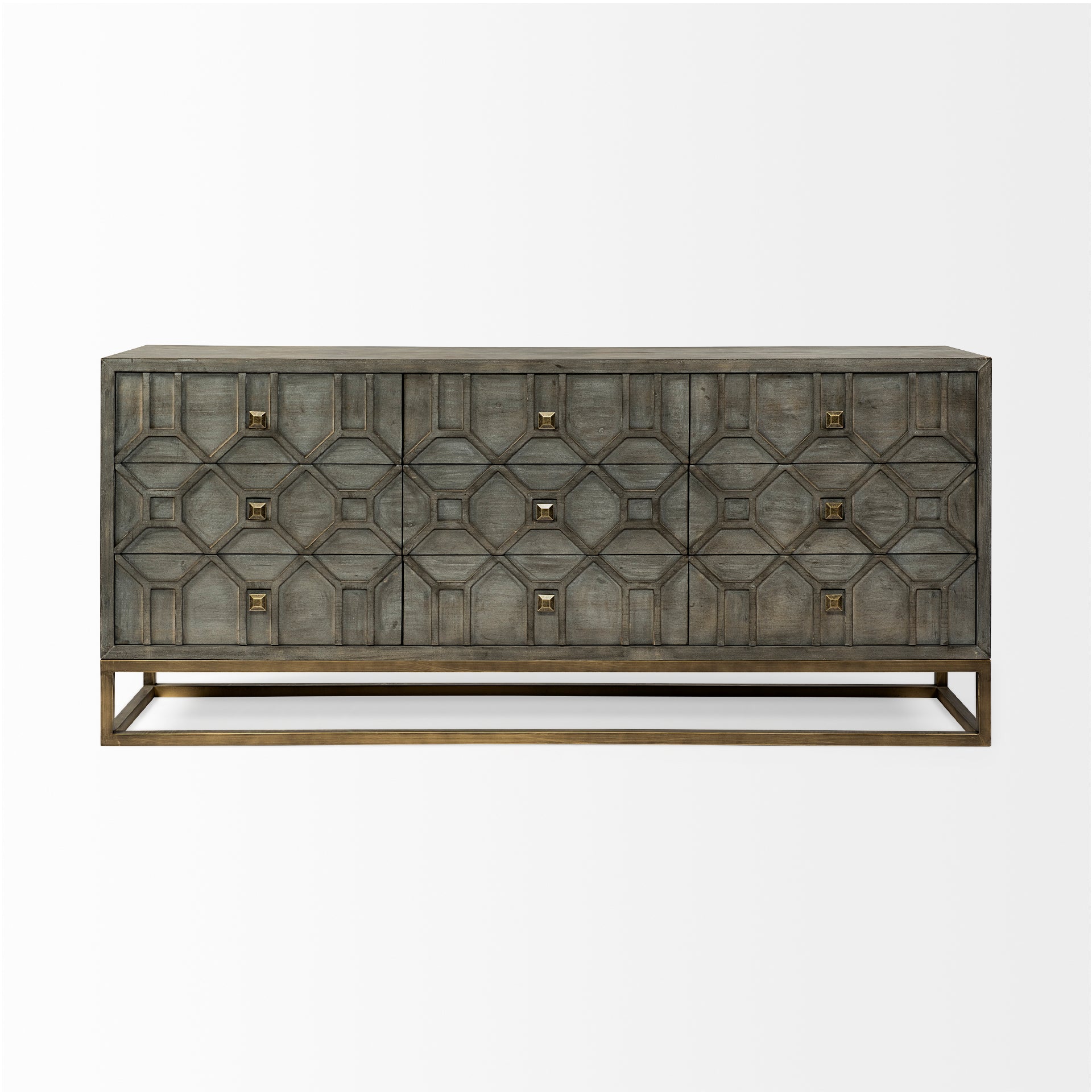 Genevieve II 70x15.8 Gray Fir Veneer W/Gold Metal Frame Base 9 Drawer Sideboard