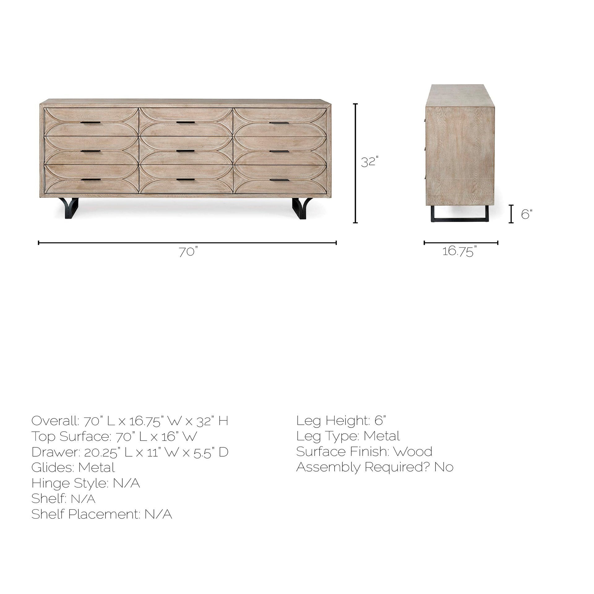 Giselle II Brown Fir Veneer W/Black Metal Leg 9 Drawer Sideboard