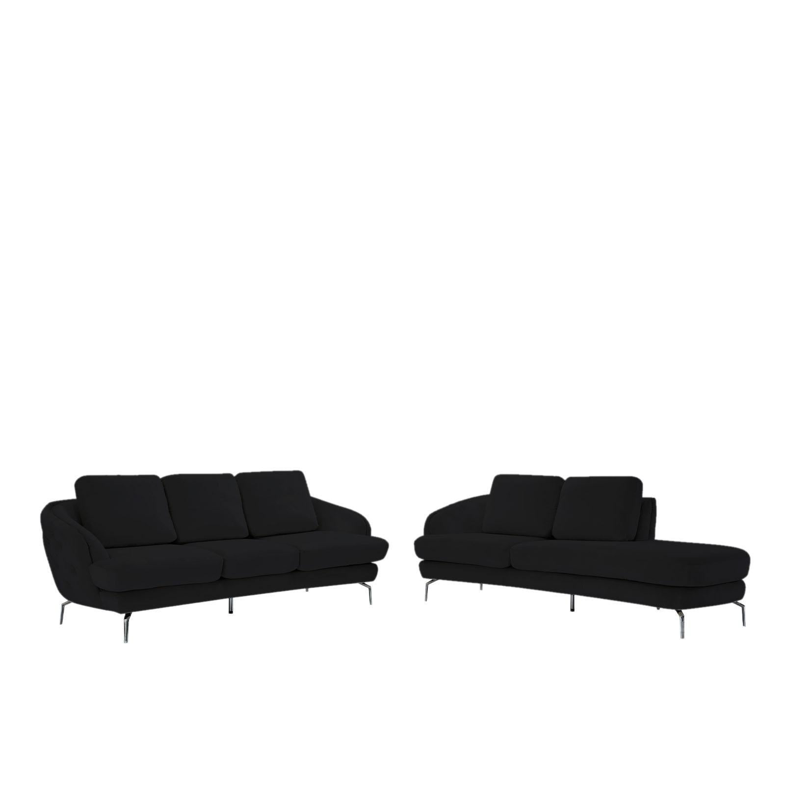 Giulia Silver Sofa Chaise Set – Black