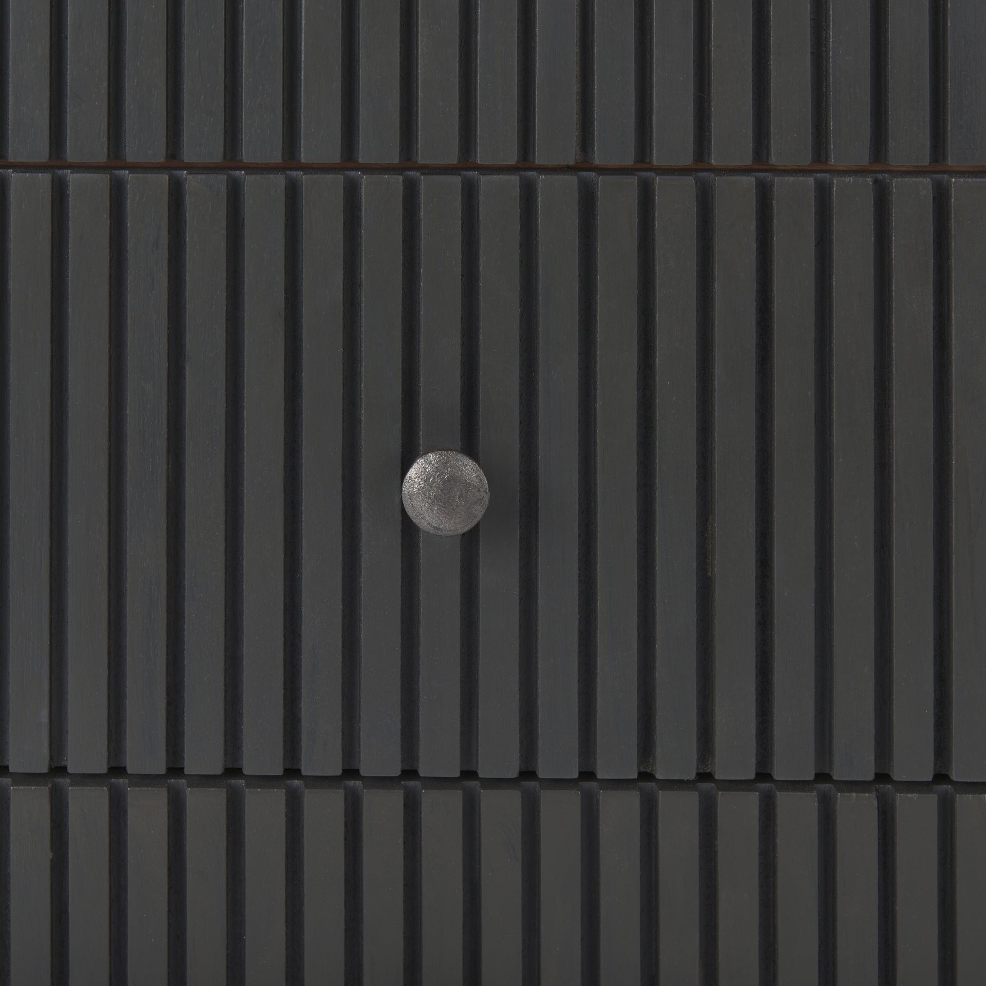 A robust and bold, contemporary accent cabinet with three drawers for ample storage. Made from solid wood and iron, this piece features a two-tone coloring