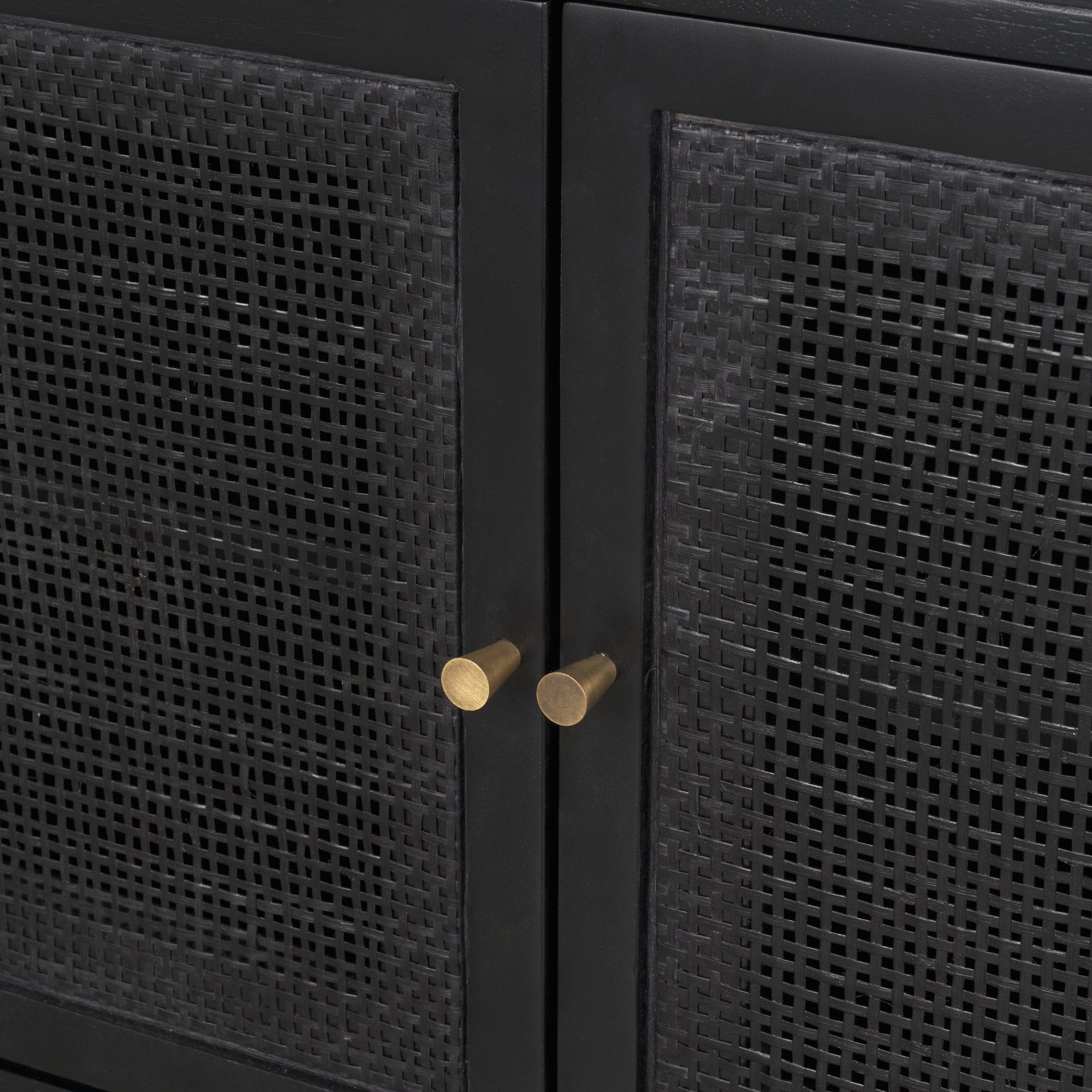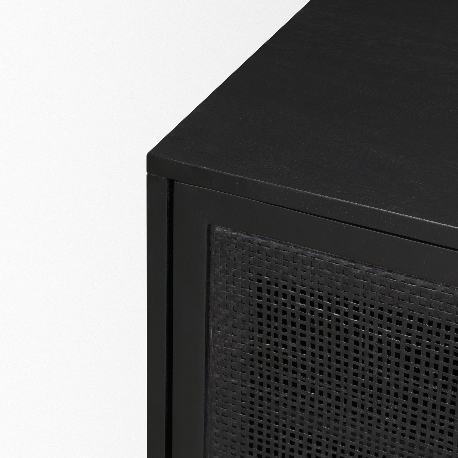 The Grier Media Console combines matte black wood and natural cane for a modern-organic look.
