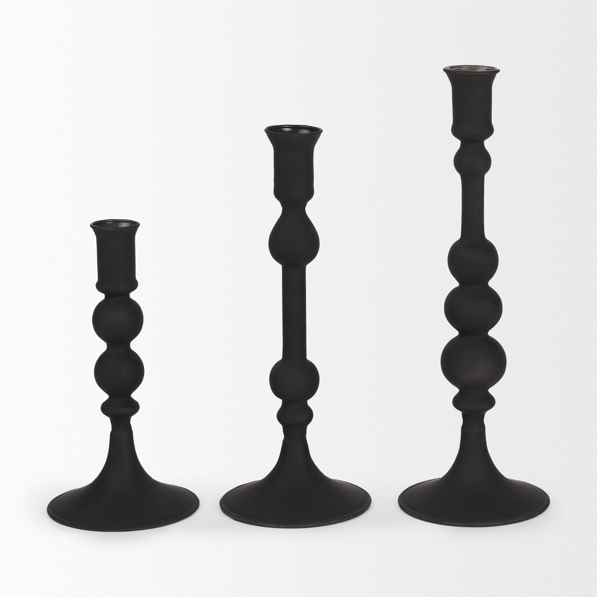 The Haute candlestick holders have the benefit of looking like black metal, but the light-weightedness of delicate blown glass.