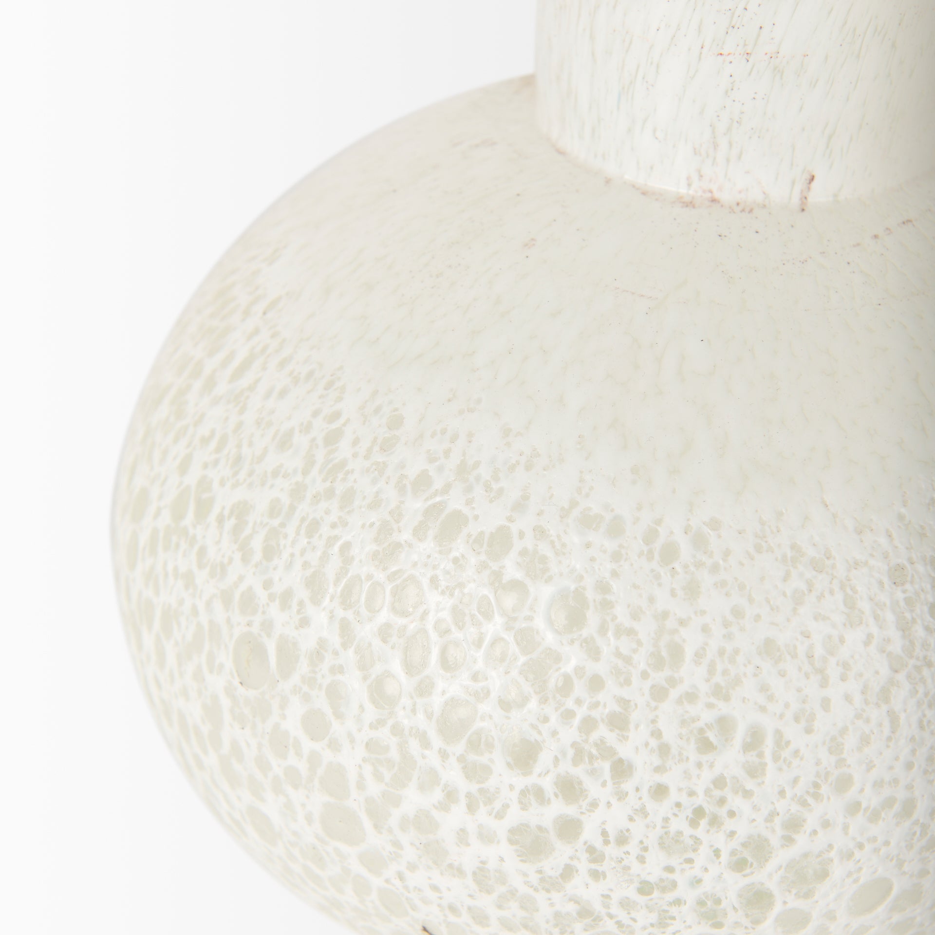 The Heket Vase is a clear blown glass vase with a matte white mottled-finish effect.