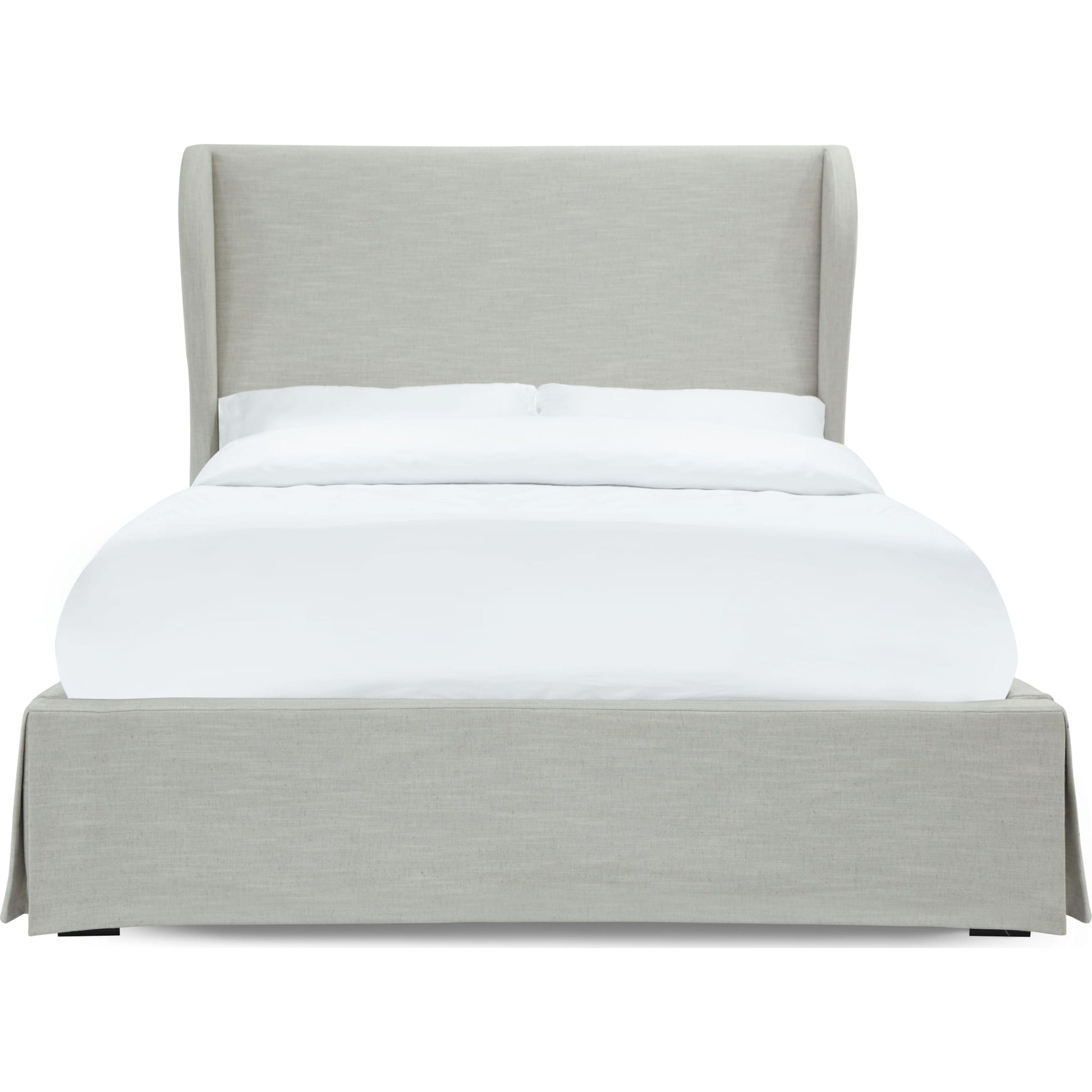 Designed with clean lines in an array of colors, our Juliette upholstered bed collection brings relaxed luxury to your bedroom. Made with solid wood framing, layered foam and soft linen-blend fabric, this group creates a no-maintenance slipcover look with skirted bases and inverted corner pleats. Available in panel, wingback, camelback and clipped corner configurations.
