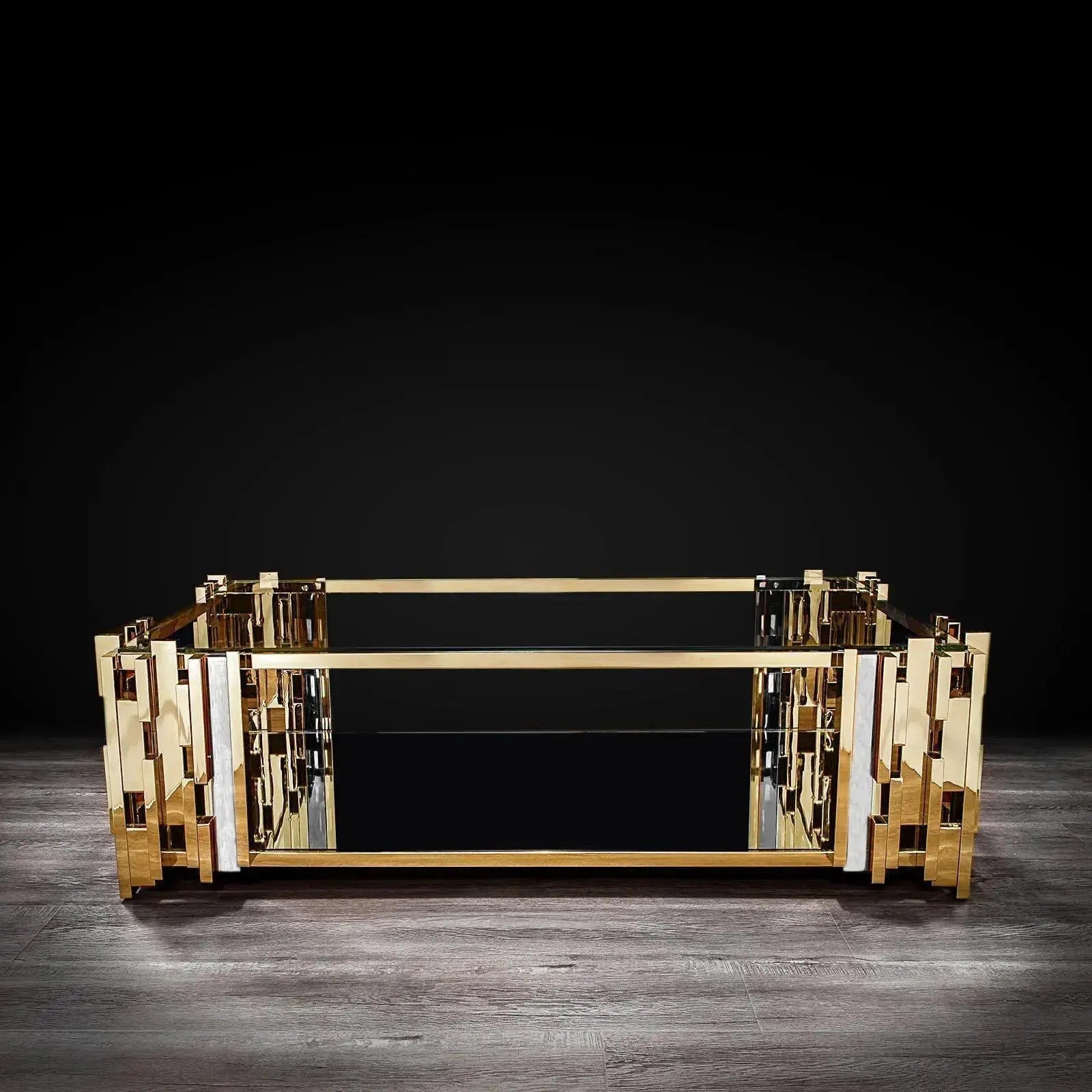 Illusion rectangular coffee table with an astonishing stainless-steel frame. The main silver color is complimented with stunning rose gold touch in few parts of this modern design. The top has a mirrored glass which exposes the eye-opening contemporary design of the Illusion set. The mirrored bottom glass fulfills all the attention to detail needed for this wonderful piece.