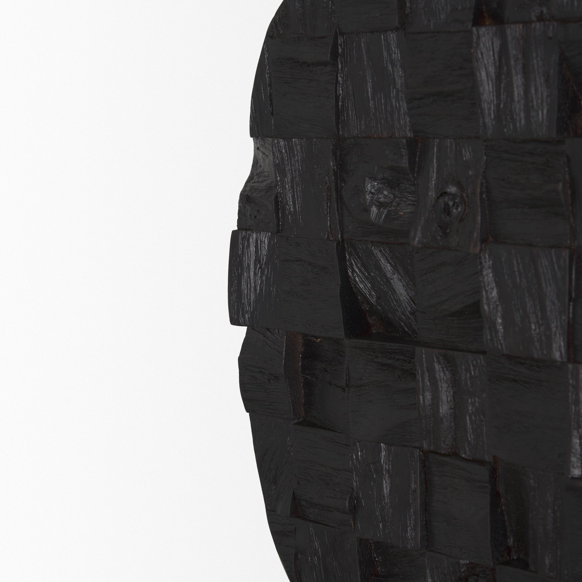 The deep-set and raised cuts of the wood present a visually stimulating textural presence to its surroundings.