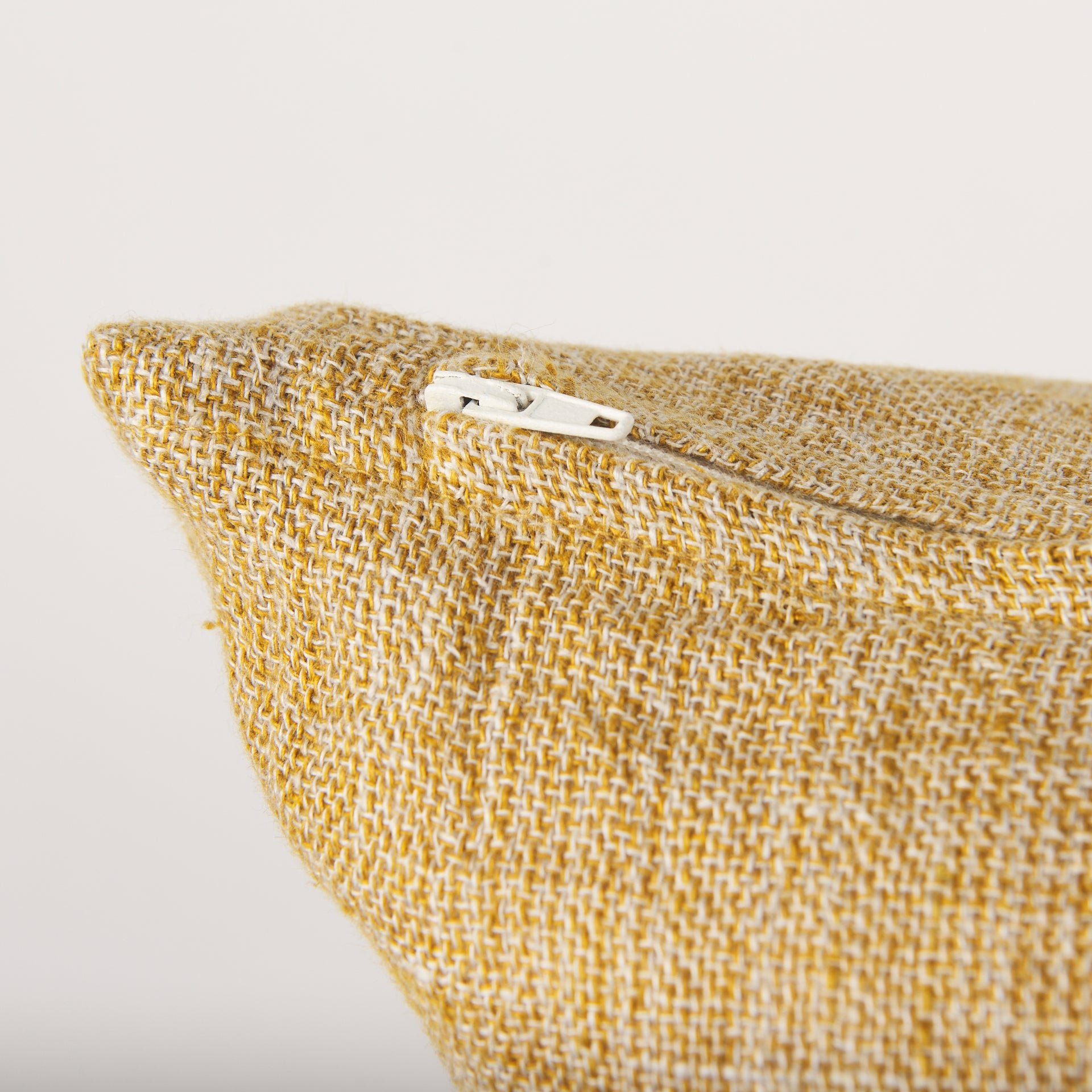 This square Jacklyn Pillow Cover is in mustard soft-washed linen.