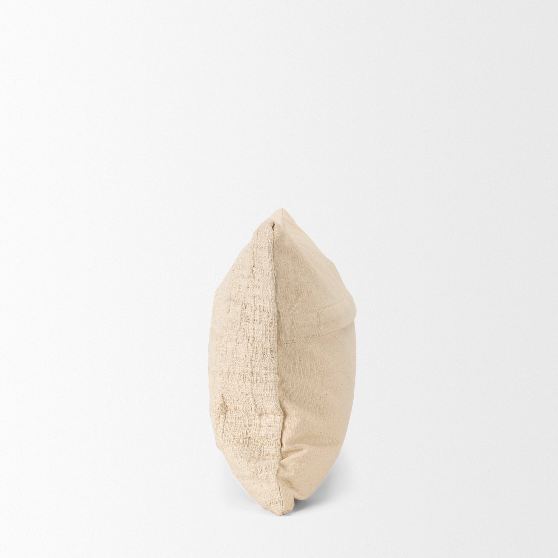 Jacory is a cream cotton-blend decorative lumbar pillow cover featuring a textured, raised knubby checker pattern.