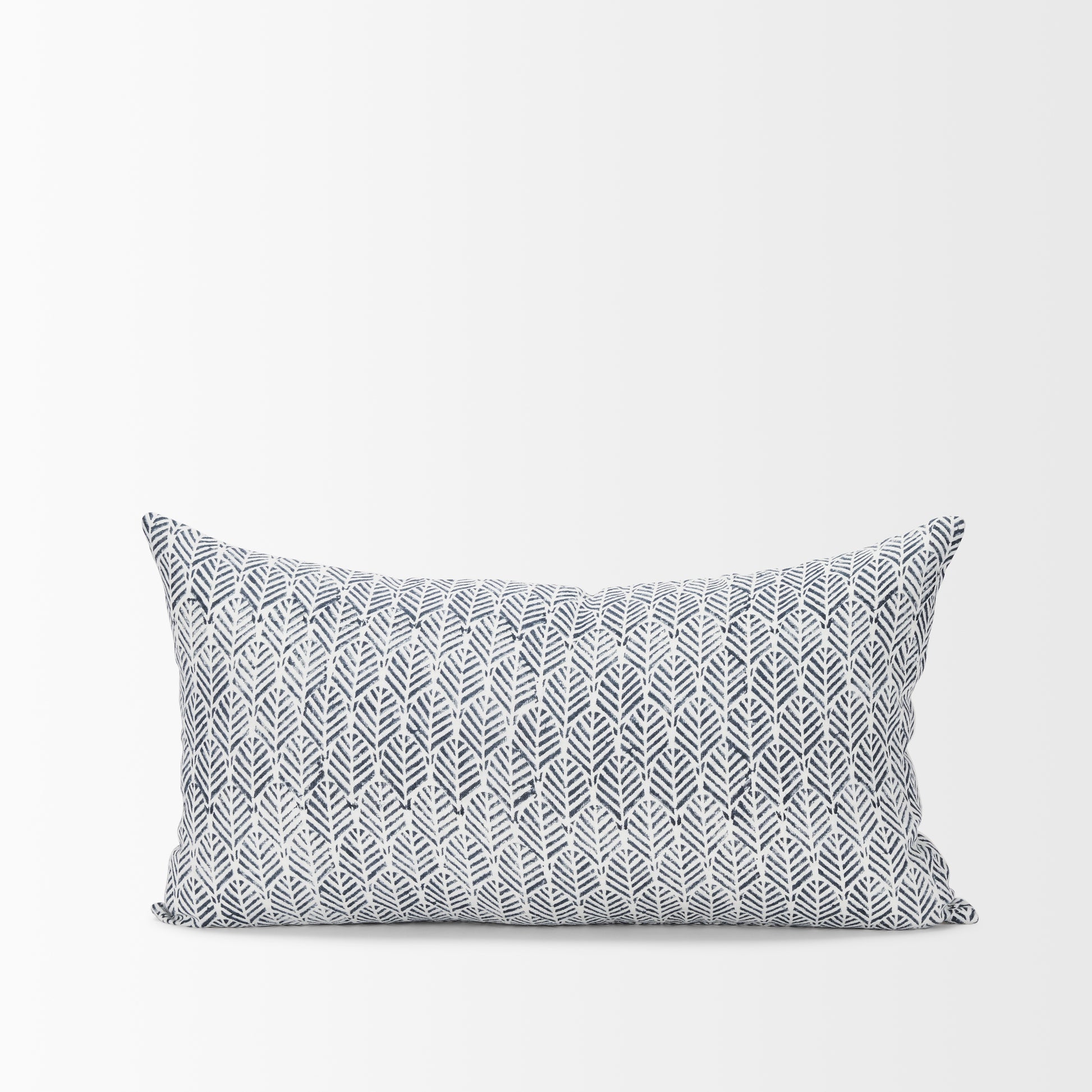 Janelle Cream w/ Indigo Print Linen Lumbar Decorative Pillow Cover