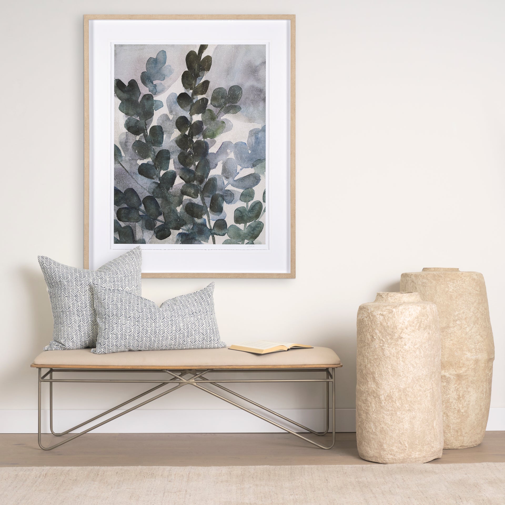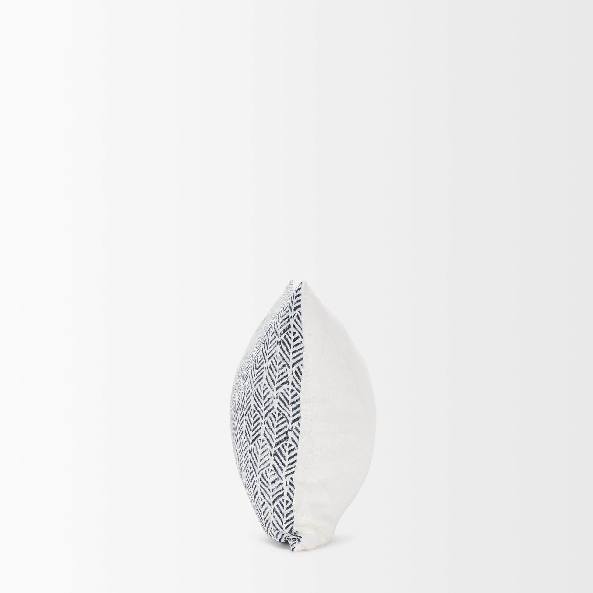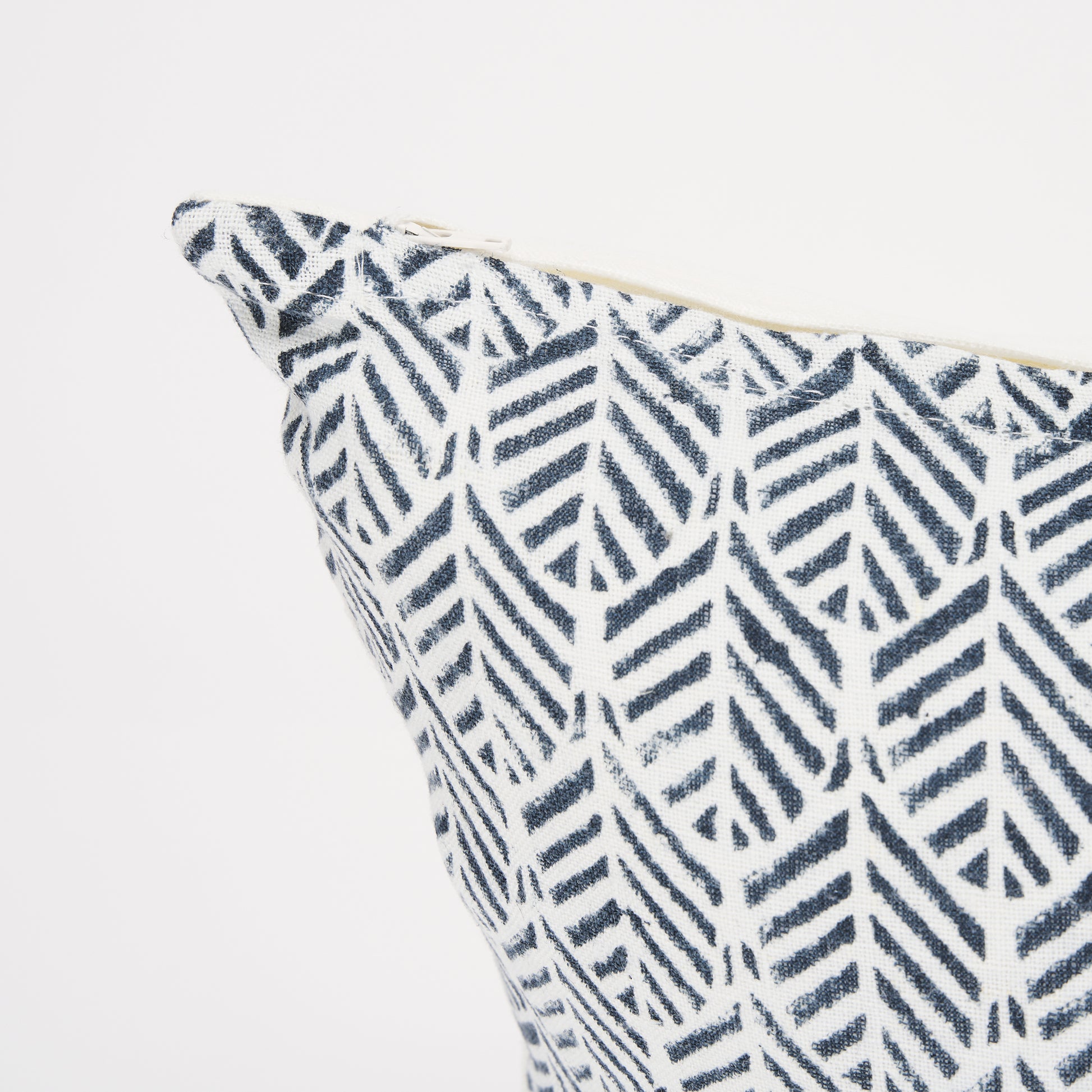 This lumbar Jenelle Pillow Cover in cream linen has an indigo arrow tail print on one side.