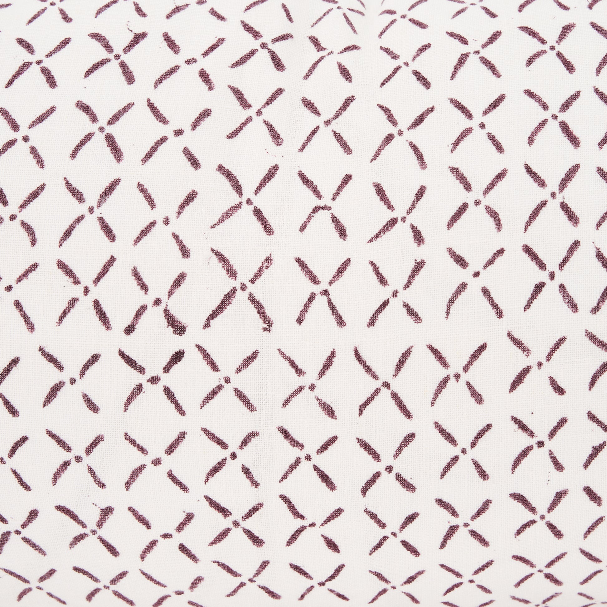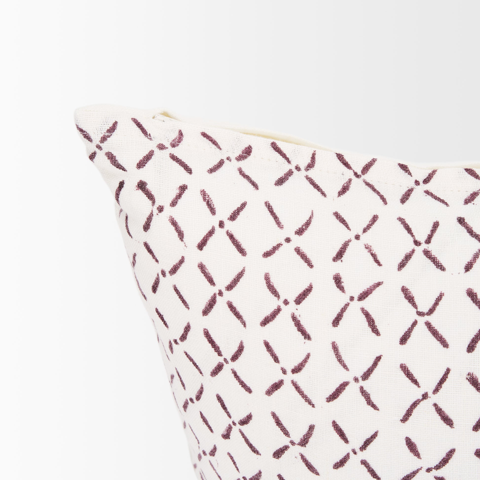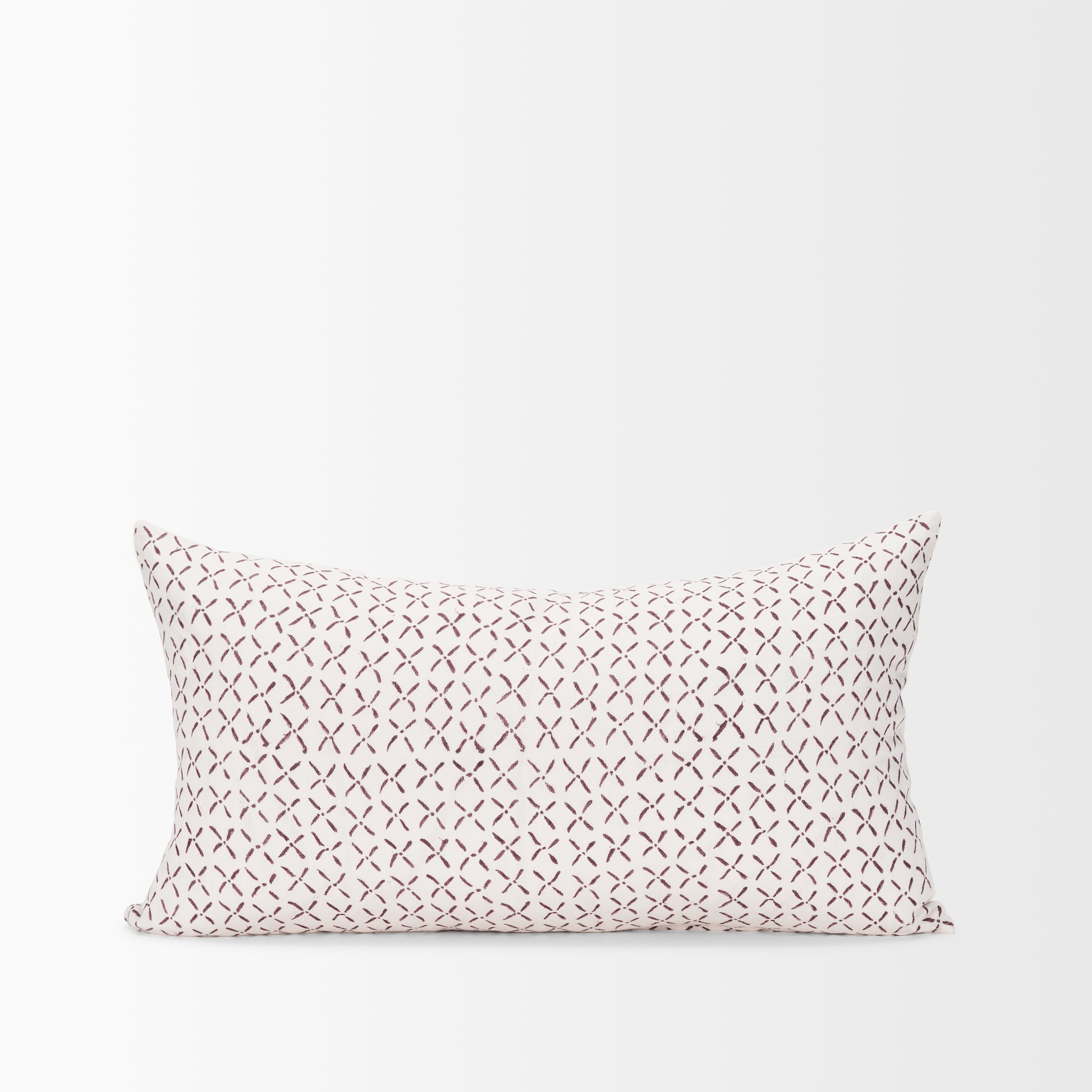 This lumbar Jayden Pillow Cover in cream linen has a merlot X-dot print on one side.